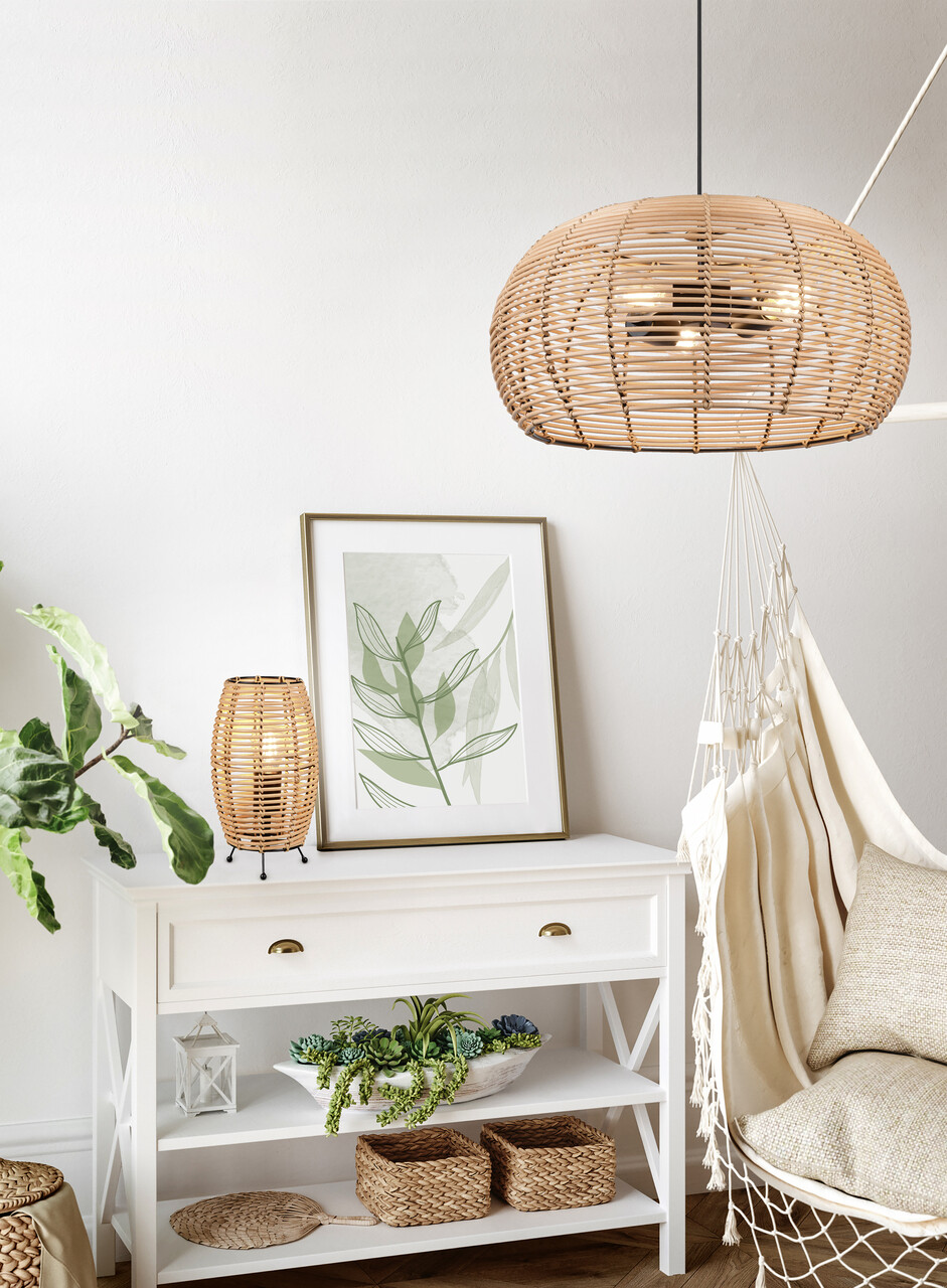 Lustra Inga, TRIO, 50x150 cm, 40W, 3x E27, ratan, natur/negru