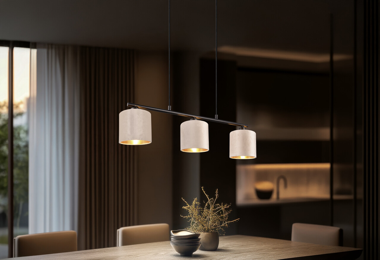 Lustra Julieta, TRIO, 66x15x150 cm, 40W, 3x E14, metal/textil, negru/bej
