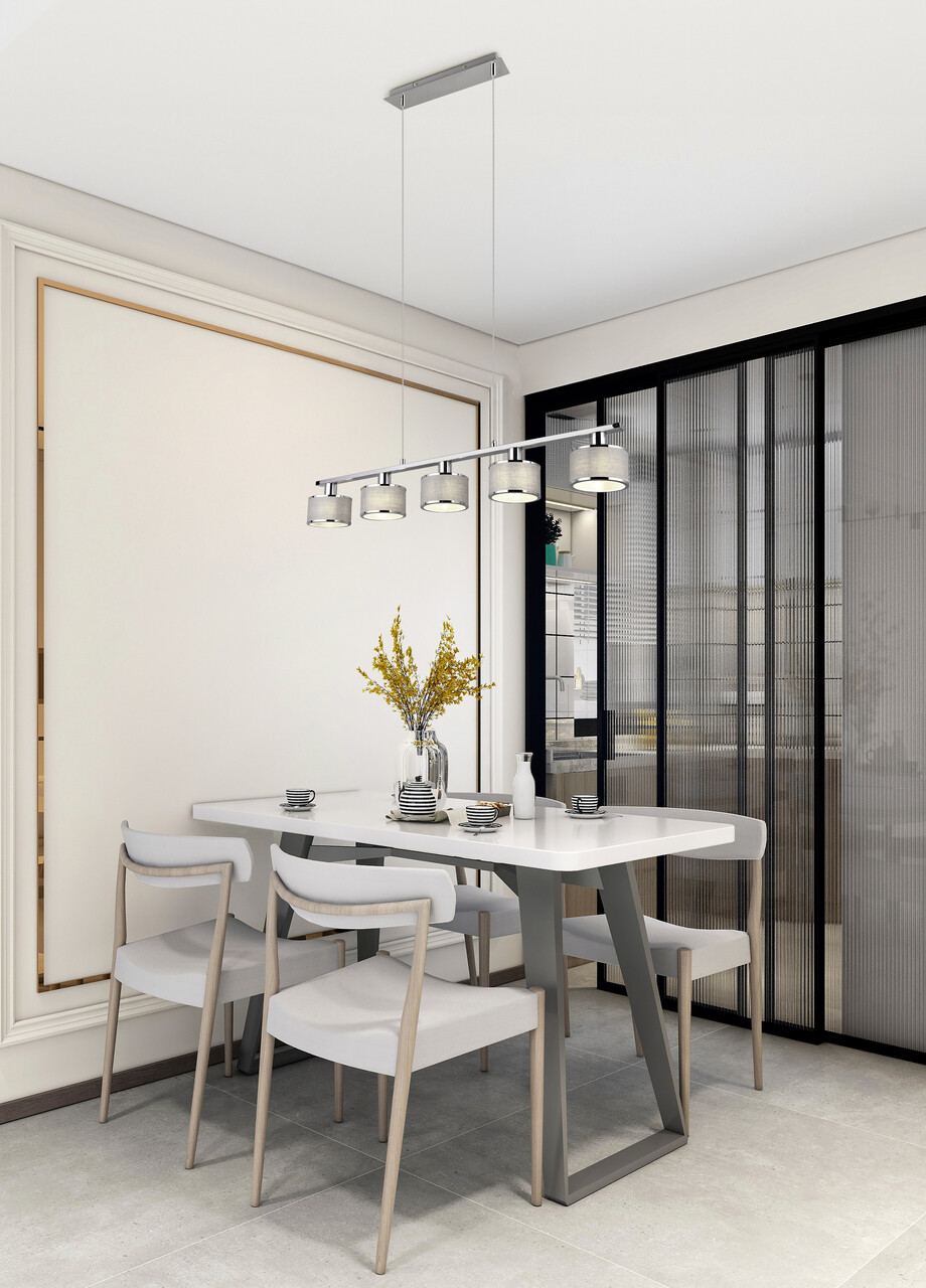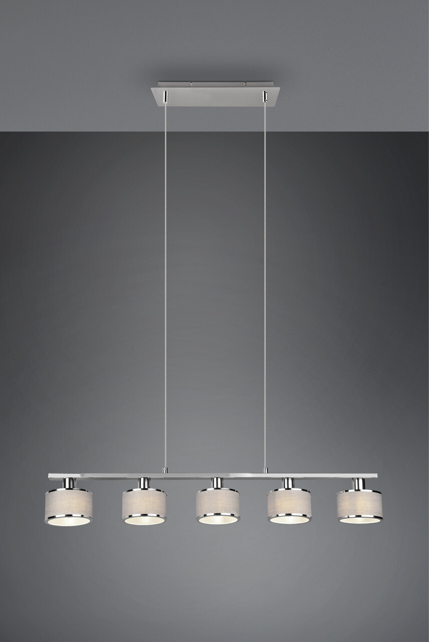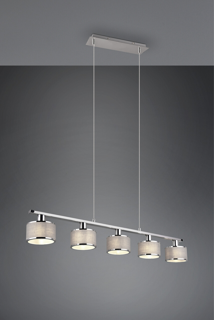 Lustra Kaprun, TRIO, 92x12x150 cm, 28W, 5x E14, metal, argintiu/gri