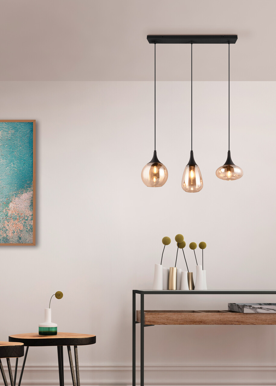 Lustra Lumina, TRIO, 60x6.5x150 cm, 40W, 3x E14, metal, negru mat