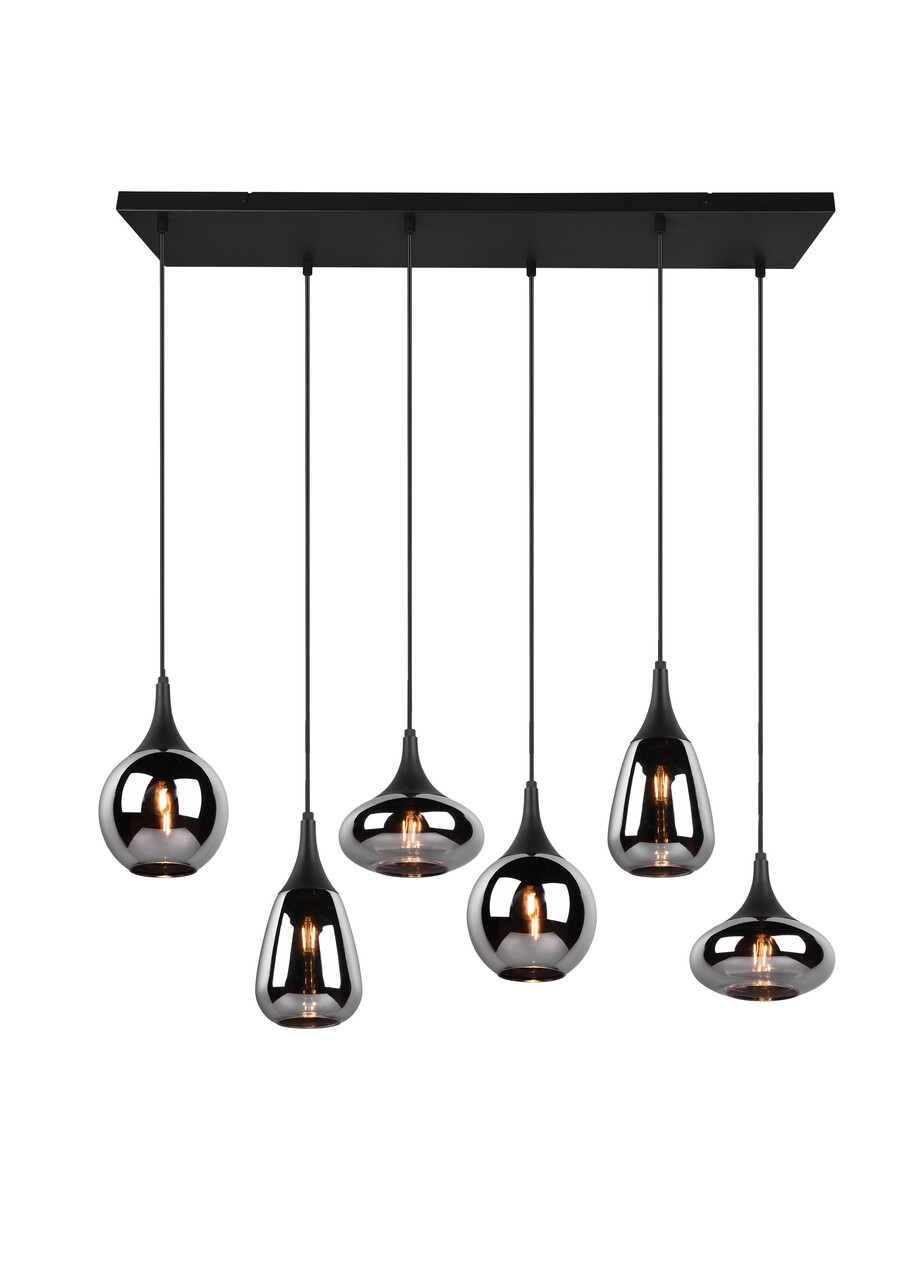 Lustra Lumina, TRIO, 85x20x150 cm, 40W, 6x E14, metal, negru mat/argintiu