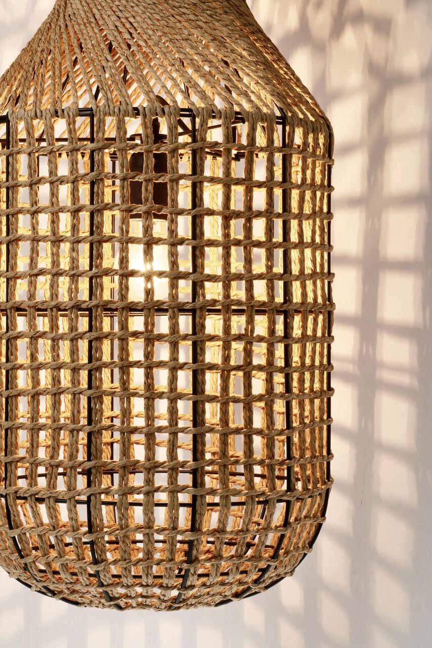 Lustra Malabo, Bizzotto, D30.5x132 cm, 2 x E27, 40W, metal/hartie impletita, natural
