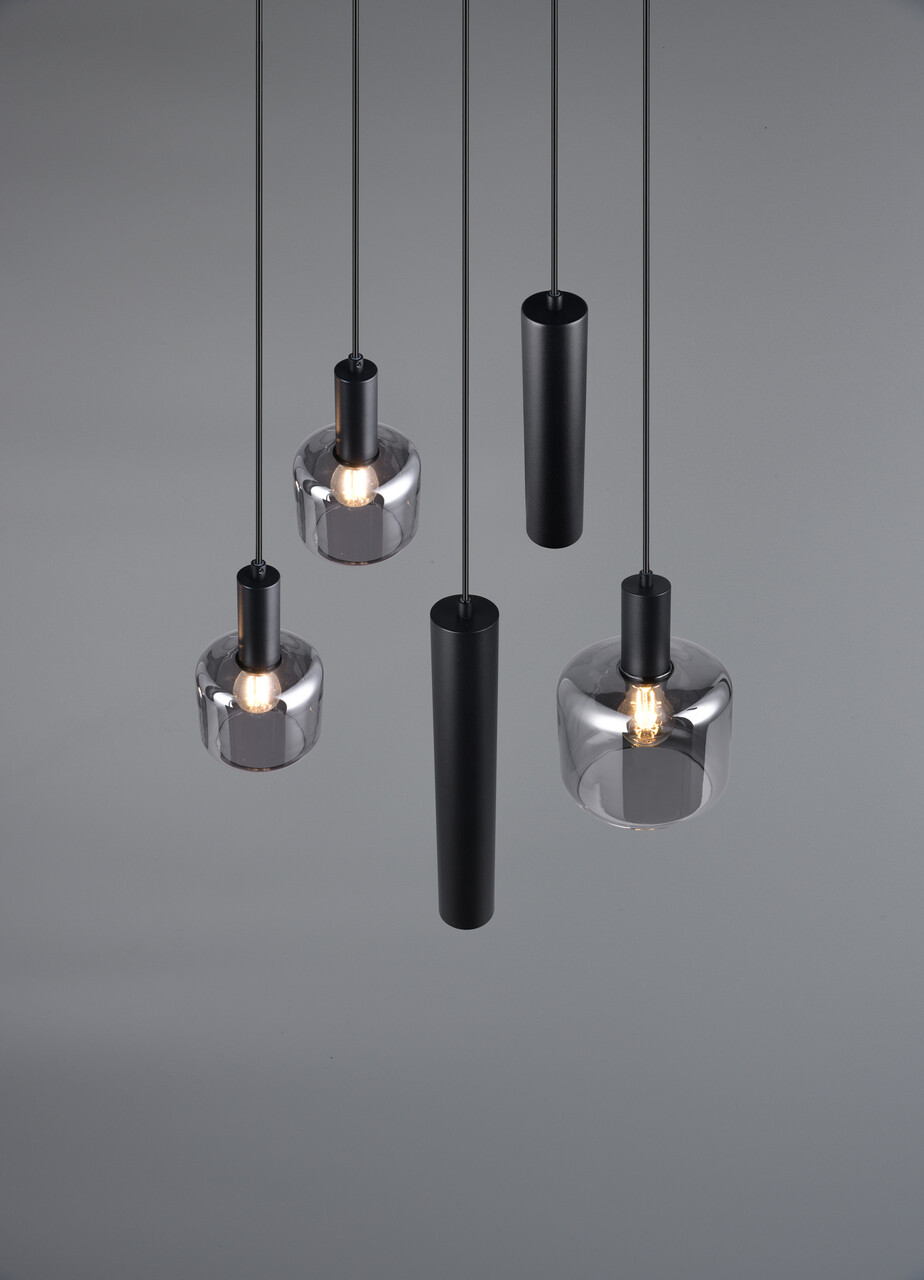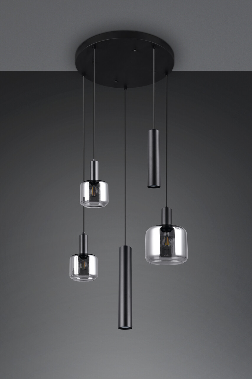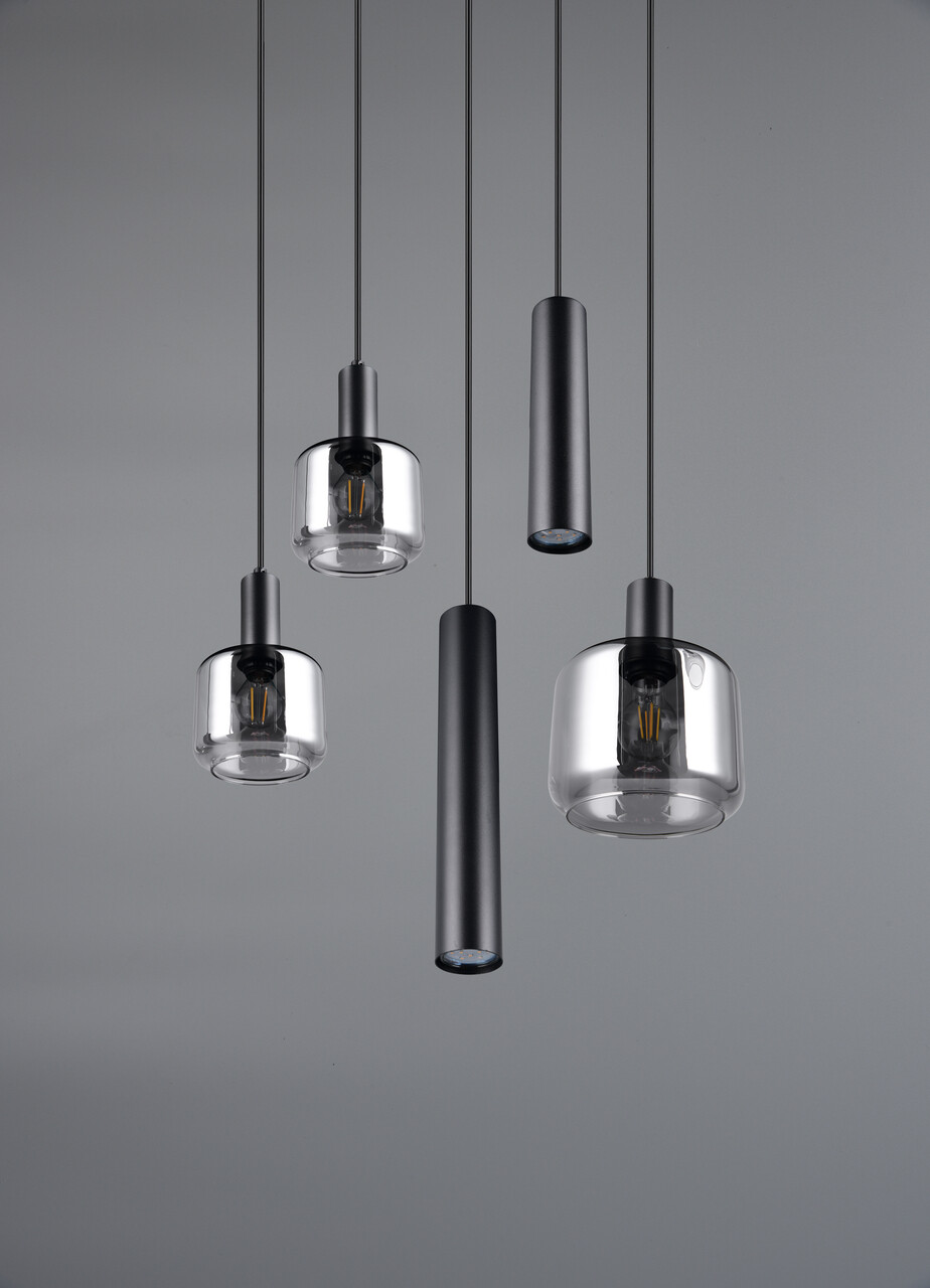 Lustra Mataro, TRIO, 40x150 cm, 10W / 10W, 1x E27 / 2x E14 / 2x GU10, metal, negru mat/argintiu