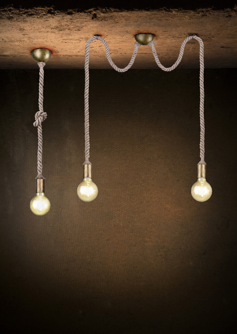 Lustra Rope, TRIO, 12x150 cm, 60W, 2x E27, metal, bronz antic