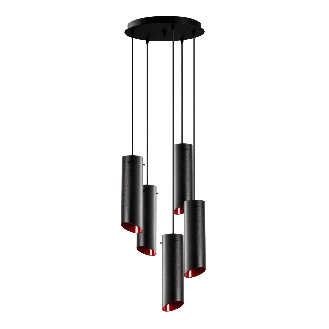 Lustra Sivani MR - 975, Opviq, 45 x 114 cm, 5 x E27, 100W, negru/rosu