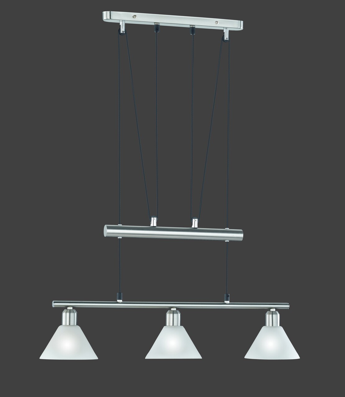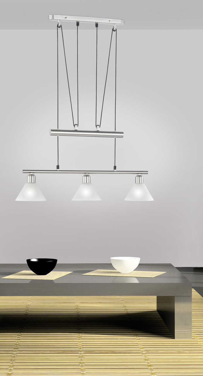 Lustra Stamina, TRIO, 66x14x180 cm, 40W, 3x E14, metal, nichel mat