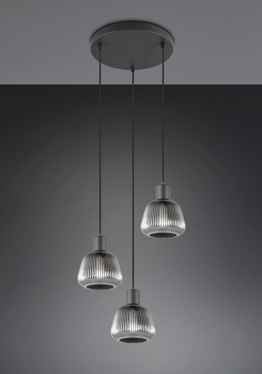 Lustra Tarifa, TRIO, 25x15x150 cm, 25W, 3x E27, metal, negru mat/argintiu
