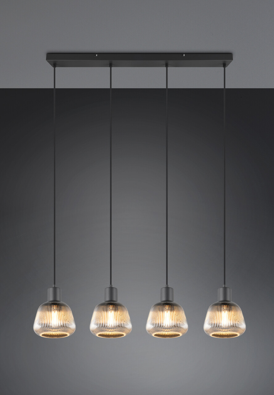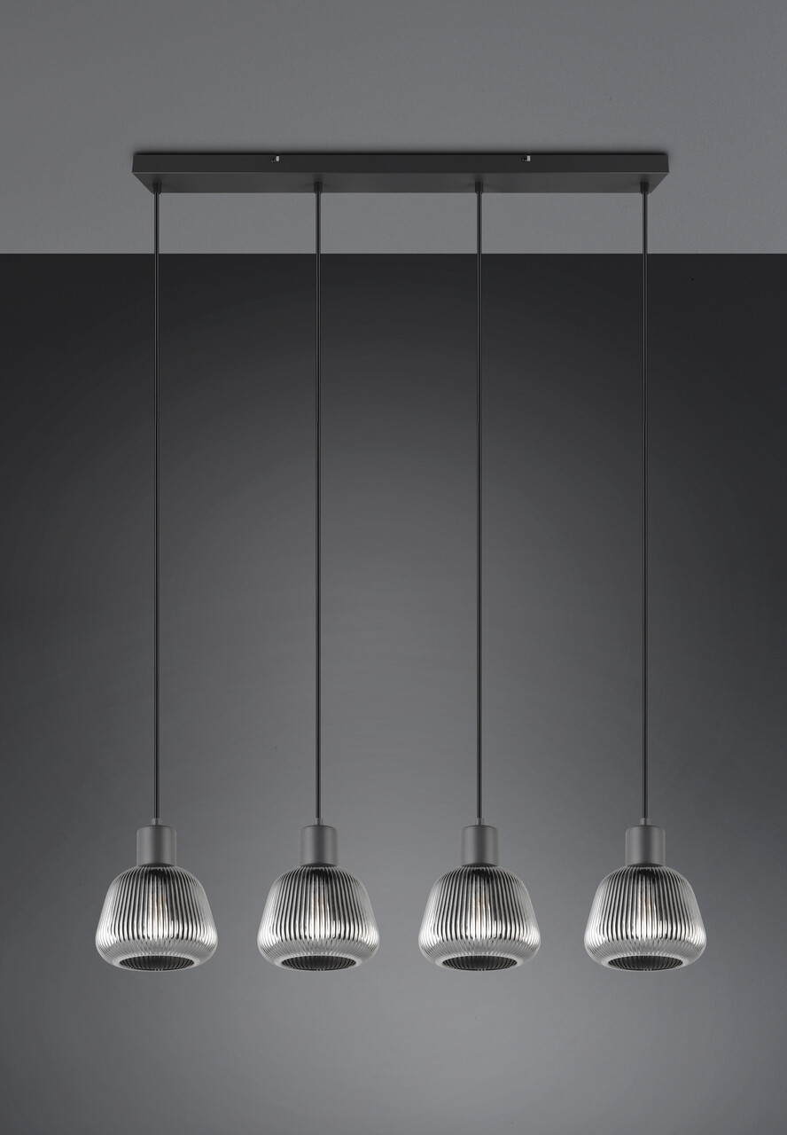 Lustra Tarifa, TRIO, 90.5x15x150 cm, 25W, 4x E27, metal, negru mat/argintiu