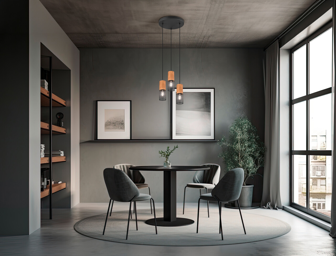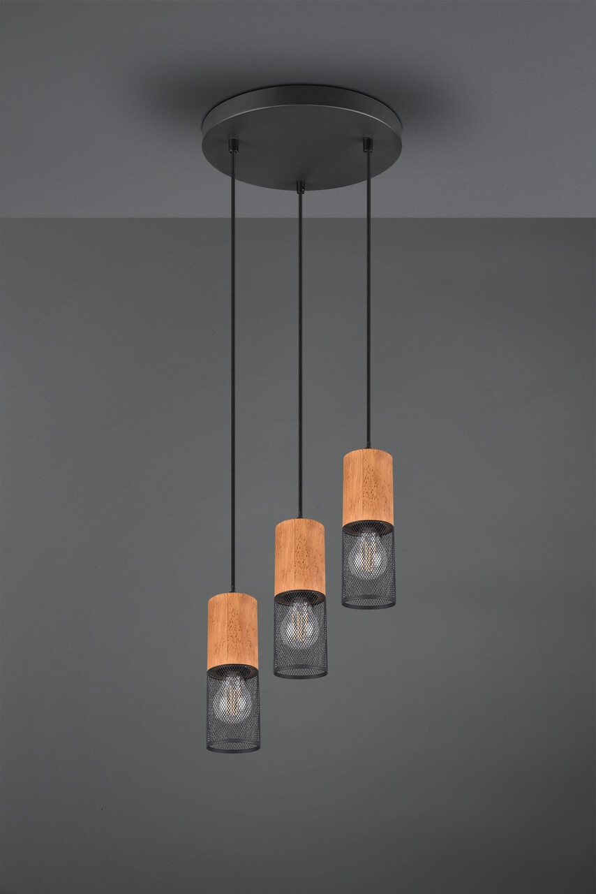 Lustra Tosh, TRIO, 28x150 cm, 40W, 3x E27, metal, negru mat/natur