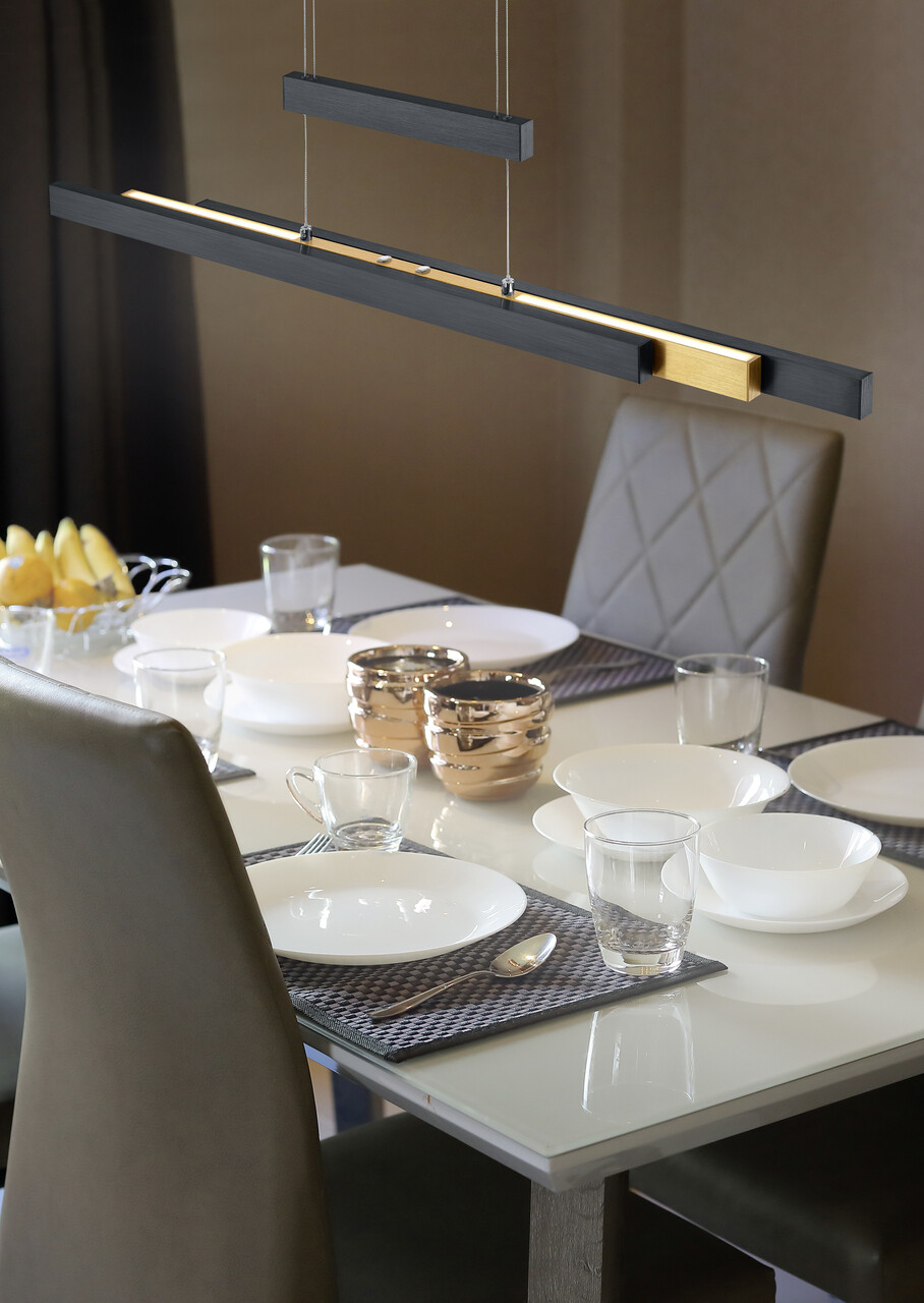 Lustra Trajan, TRIO, 150.5x6x150 cm, 45W, 1x SMD, metal, negru mat/natur