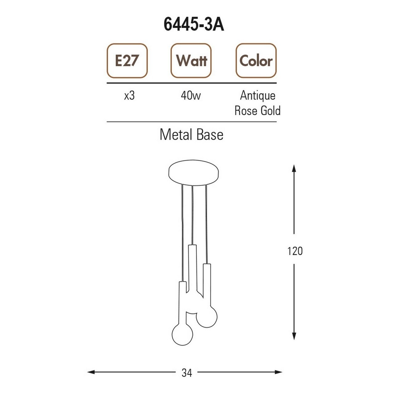 Lustra Tubo, Maison in Design, 3 x E27, 40W, negru/auriu