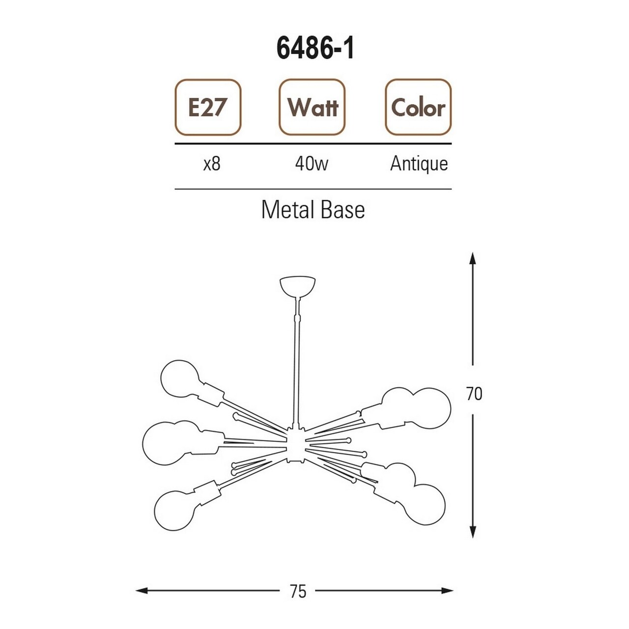 Lustra Tubo, Maison in Design, 8 x E27, 40W, negru/auriu