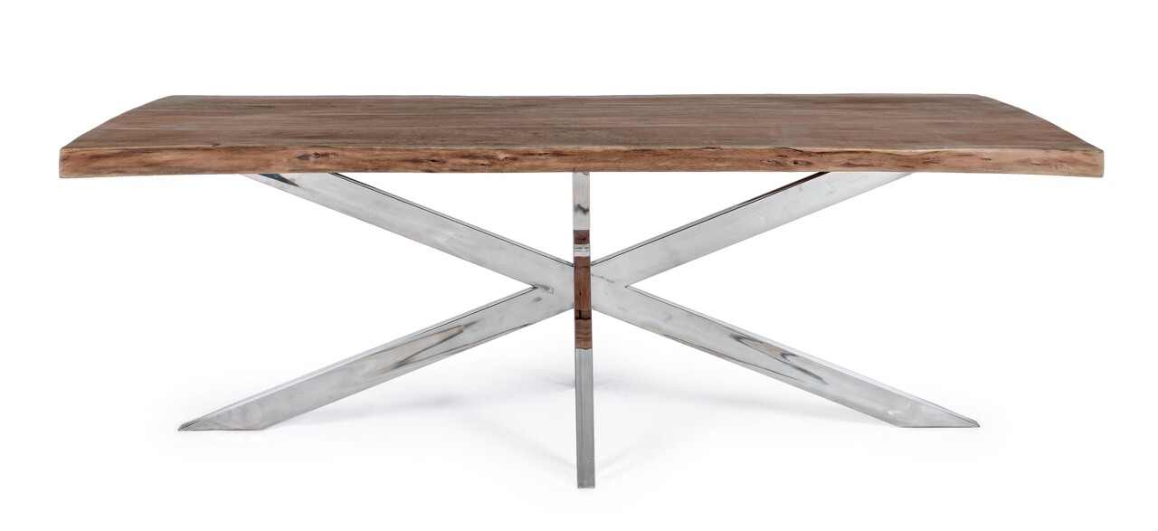 Masa Arkansas, Bizzotto, 220x100x77 cm, inox/lemn de salcam