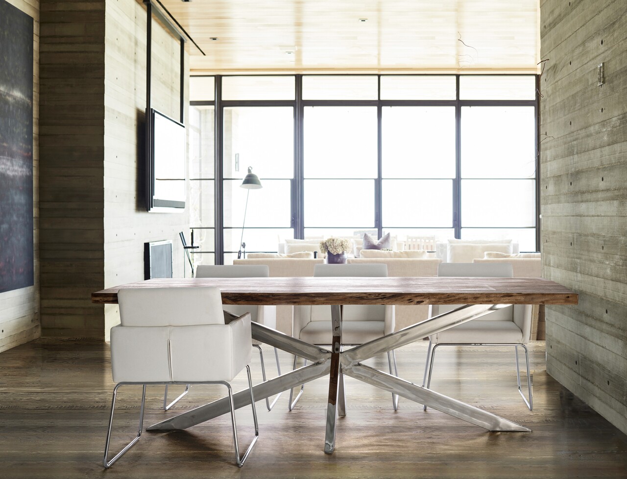 Picioare din otel inoxidabil, blat din lemn de salcam (sectiuni de bustean)