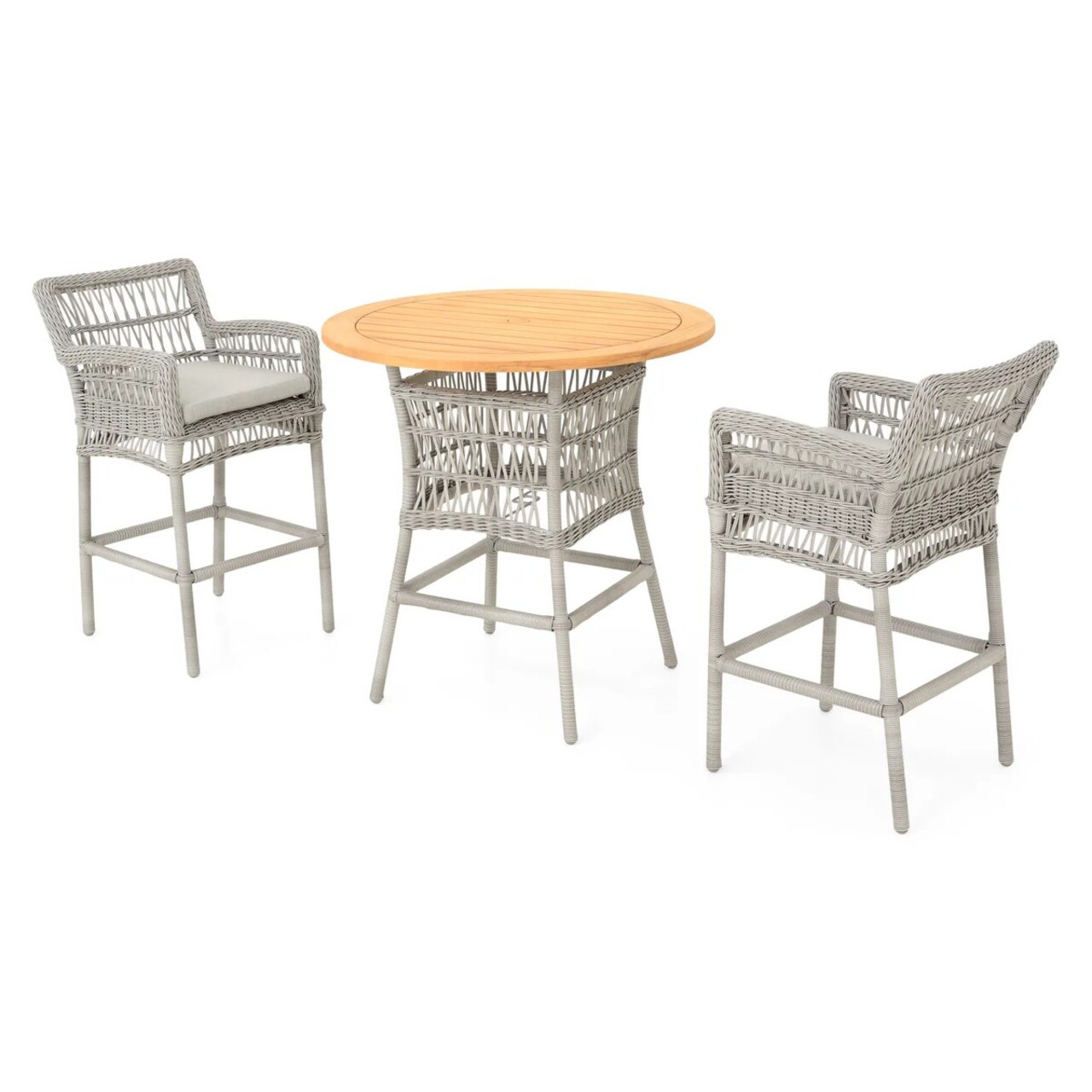 Masa bar pentru gradina/terasa Mackinac, 107x106 cm, aluminiu/lemn de teak, gri/natur