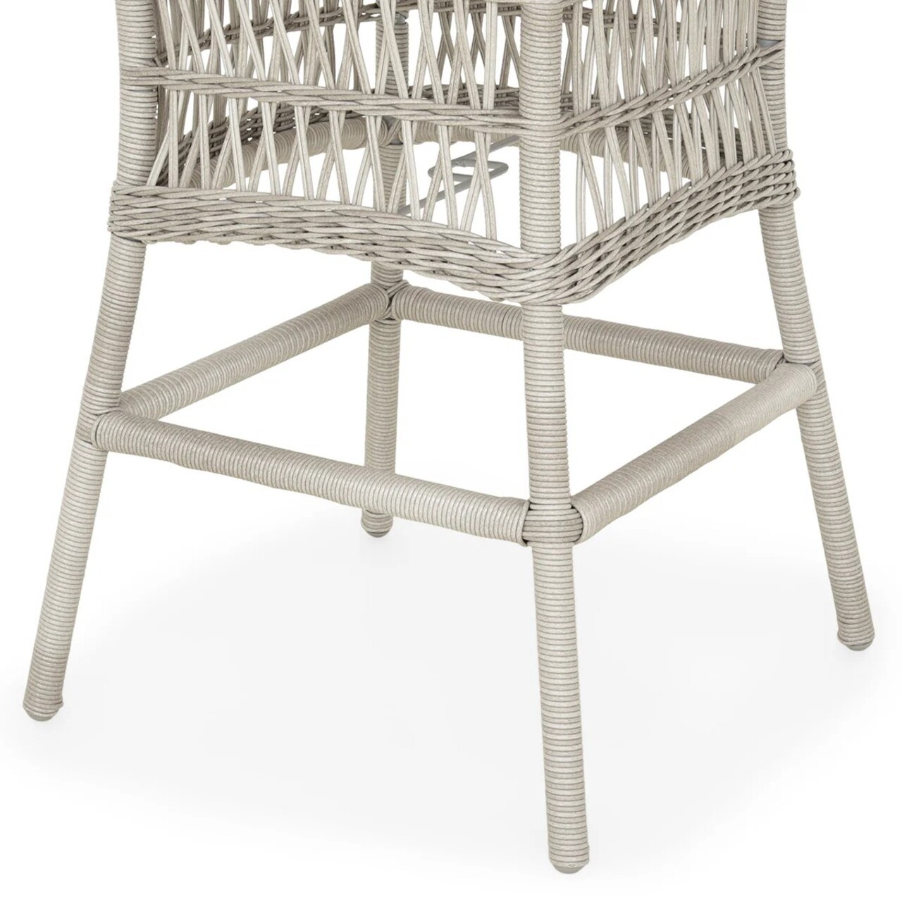 Realizata din structura solida de aluminiu vopsita in camp electrostatic si impletita cu fibre sintetice tip 'round wicker' cu protectie UV 3000h ce imita ratanul. Topul este realizat din lemn de teak.