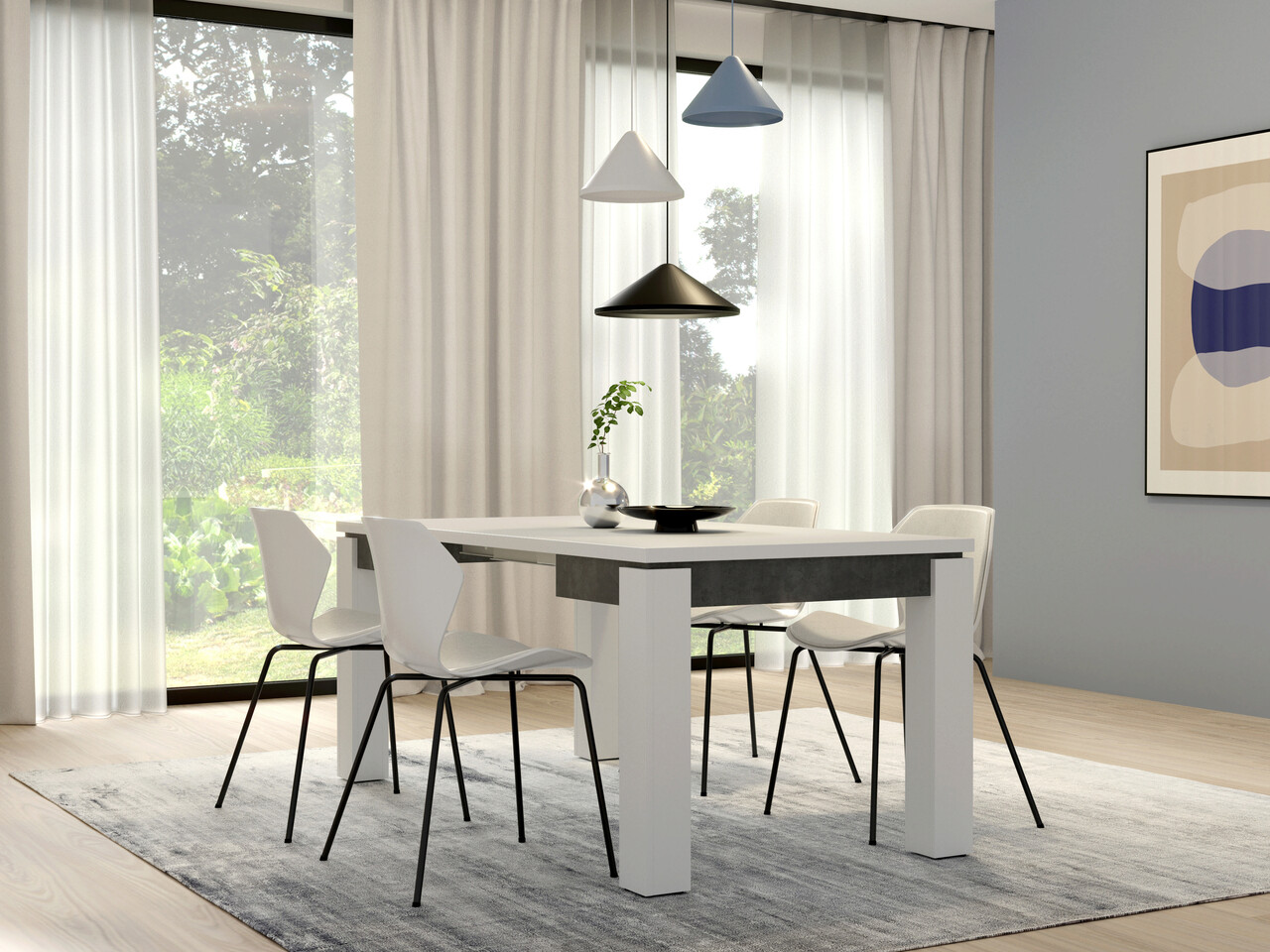 Masa Bernisse, Bedora, 90x90.4x75.9 cm, PAL, alb/gri inchis