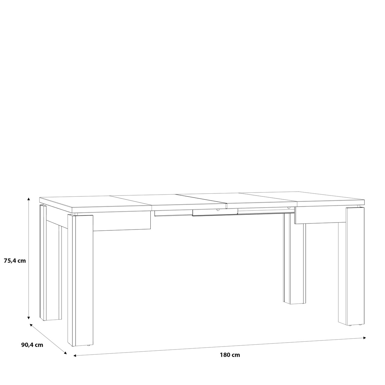 Dimensiuni masa extinsa: 180x90.4x75.9 cm
