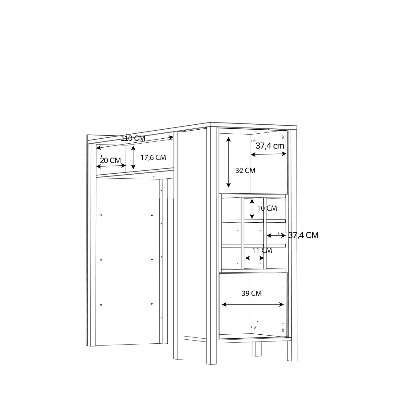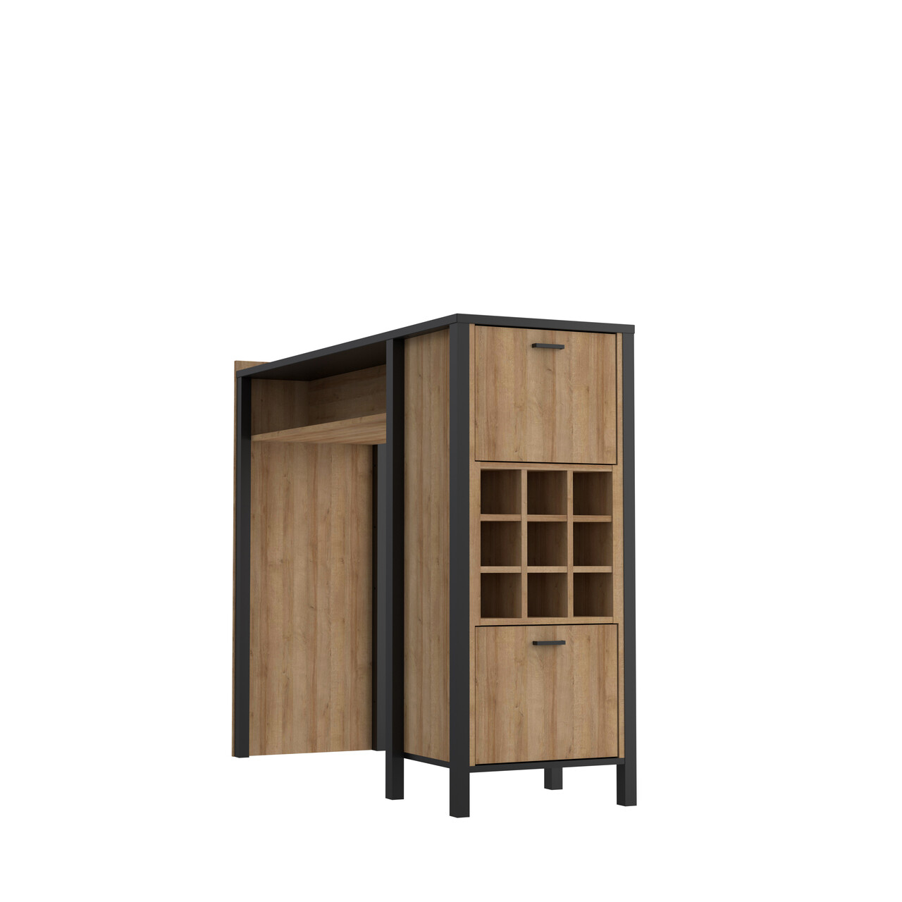 Masa de bar cu suport pentru sticle Heusden, Bedora, 151x49.2x120.3 cm, PAL/metal, negru/stejar