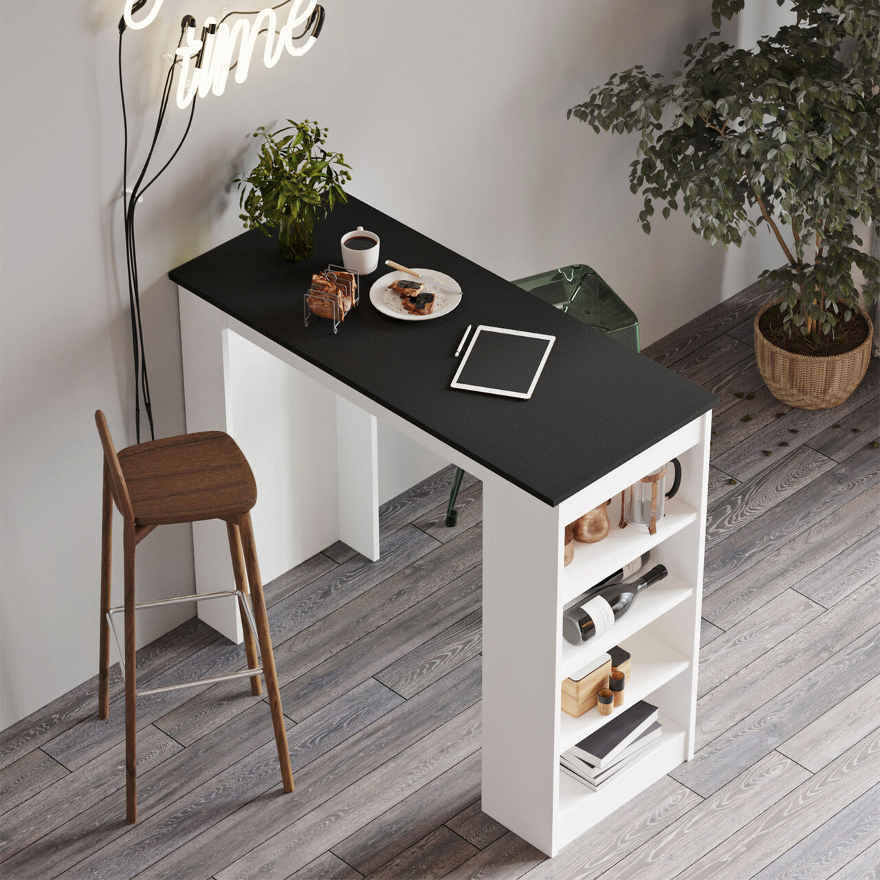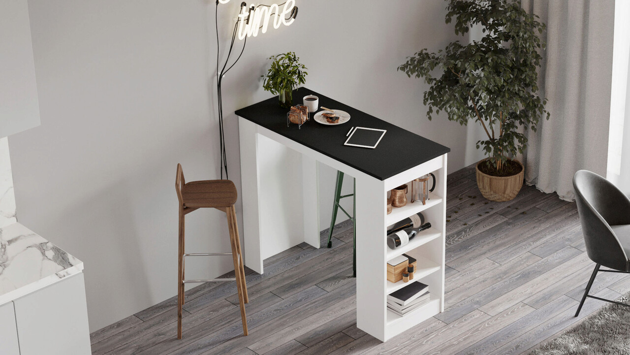 Masa de bar, Locelso, ST1, 120x101.8x51.6 cm, Alb/Negru