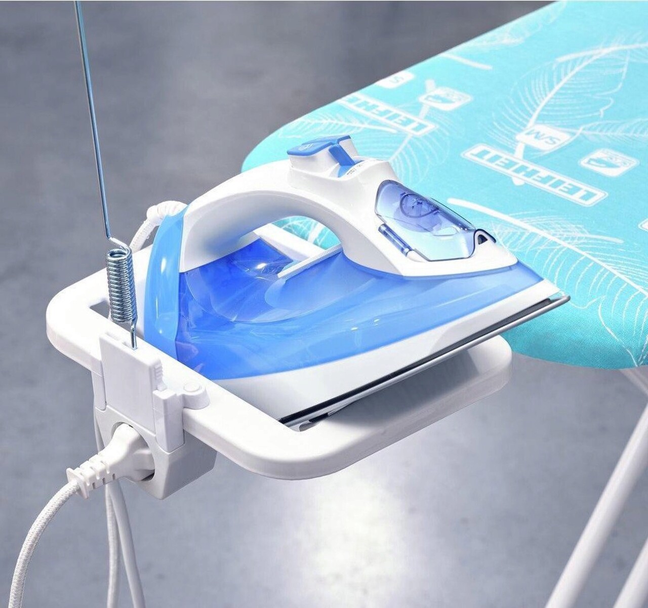 Masa este prevazuta cu suport pentru fierul de calcat, priza si suport pentru cablul de alimentare.