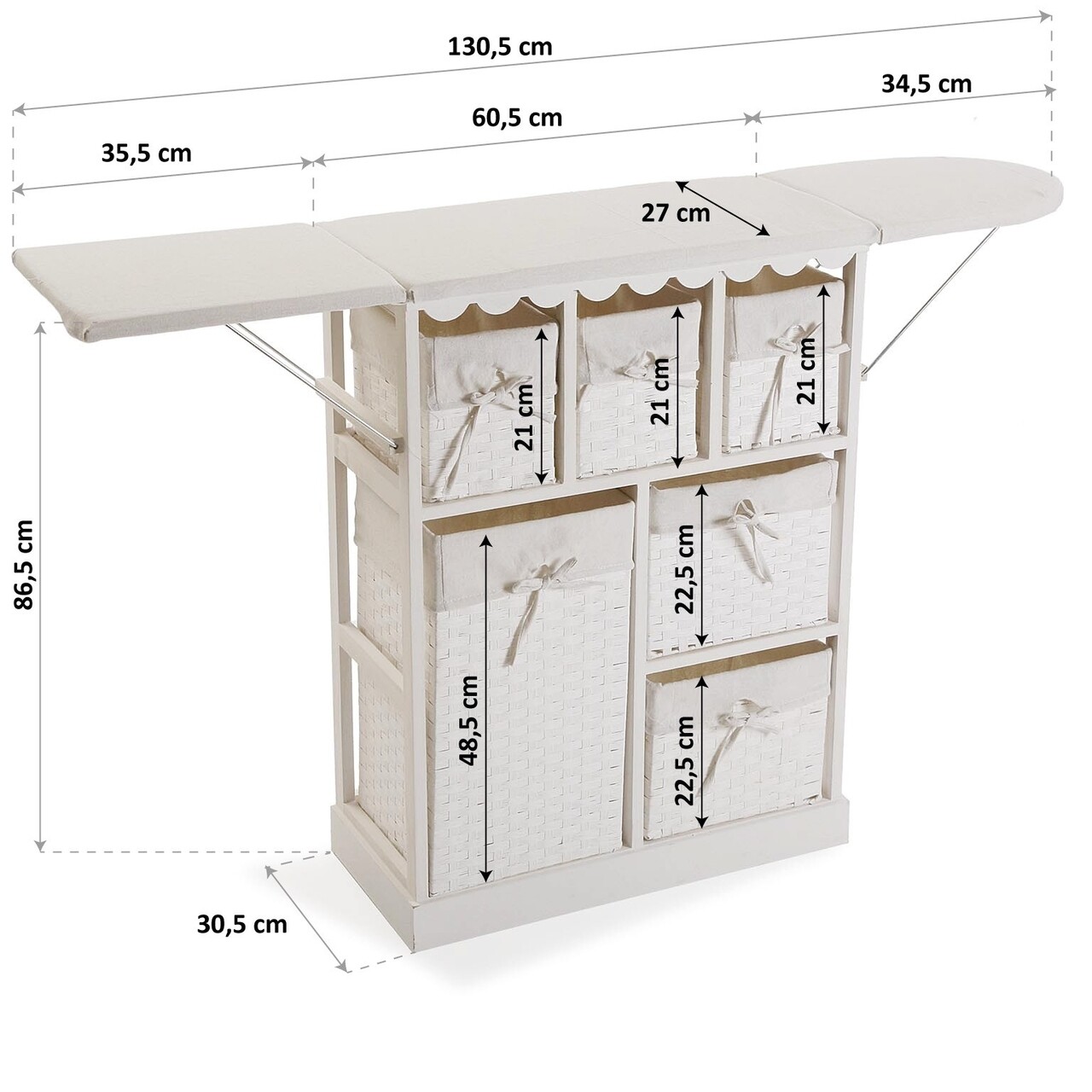 Masa de calcat pliabila cu spatiu de depozitare Versa, cu 6 cosuri, 130.5x30.5x86.5 cm, lemn
