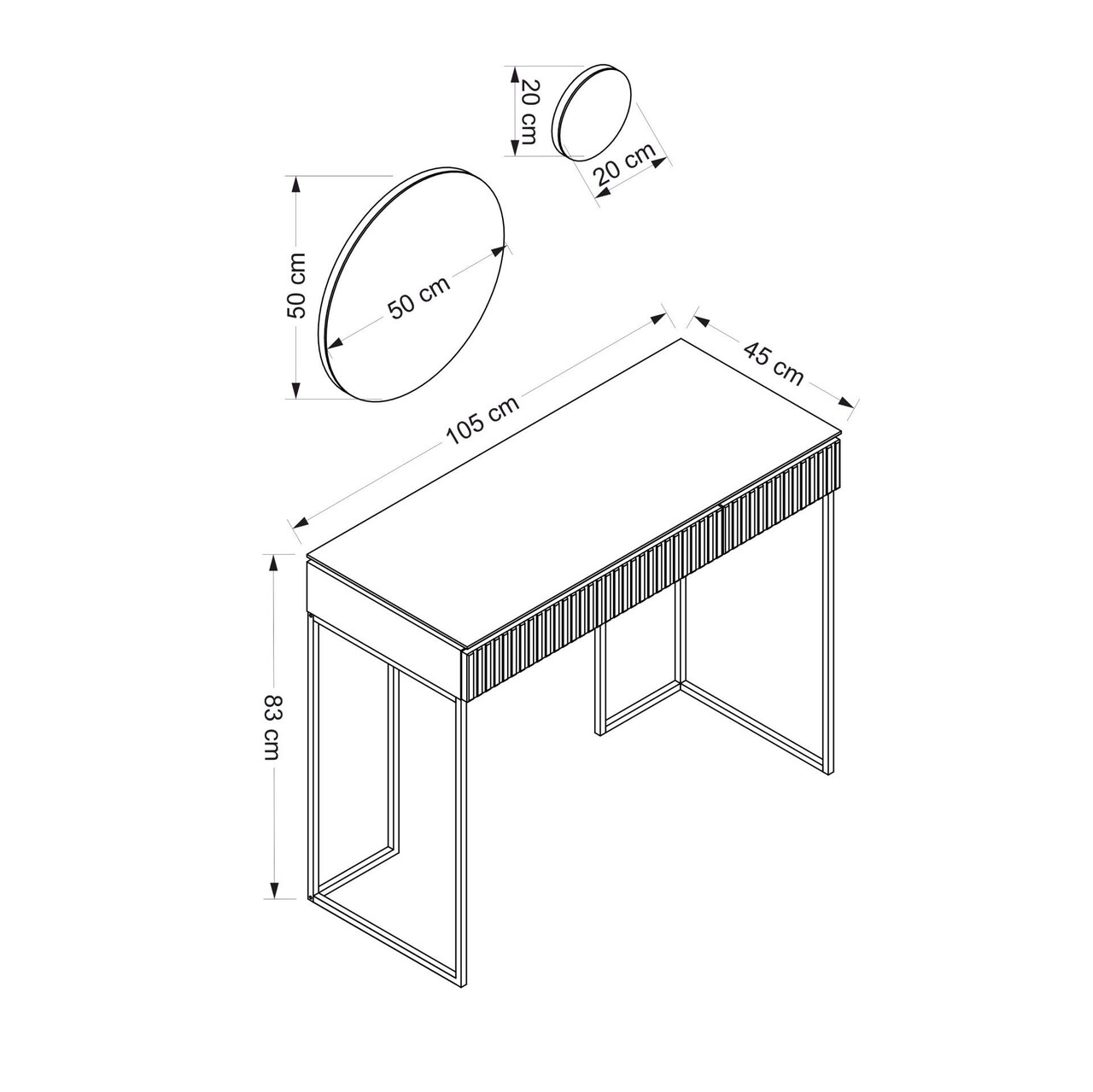 Dimensiunea mesei: Latime: 105 cm Inaltime: 83 cm Adancime: 45 cm