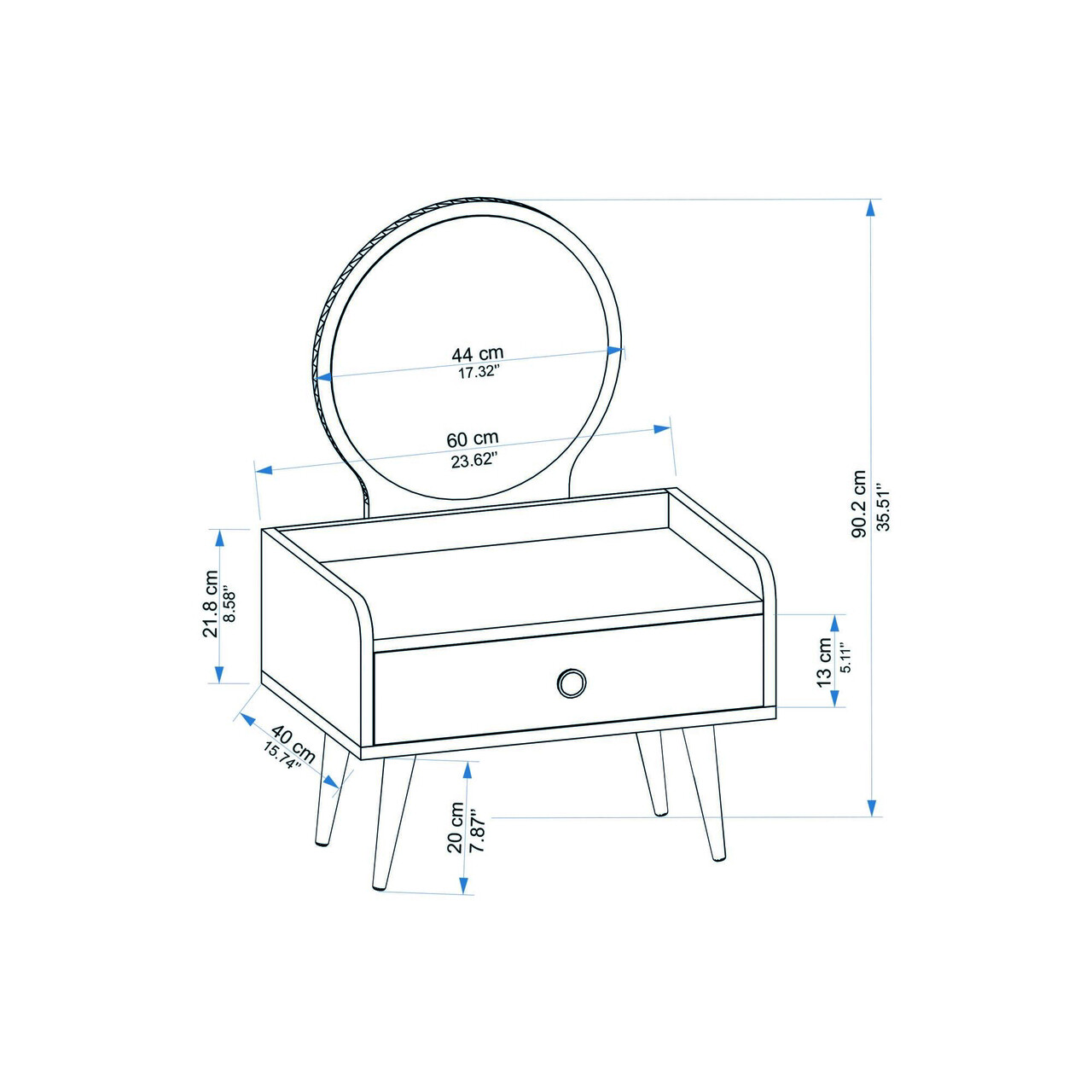 Dimensiunea mesei de machiaj: Latime: 60 cm Inaltime: 41,8 cm Adancime: 40 cm