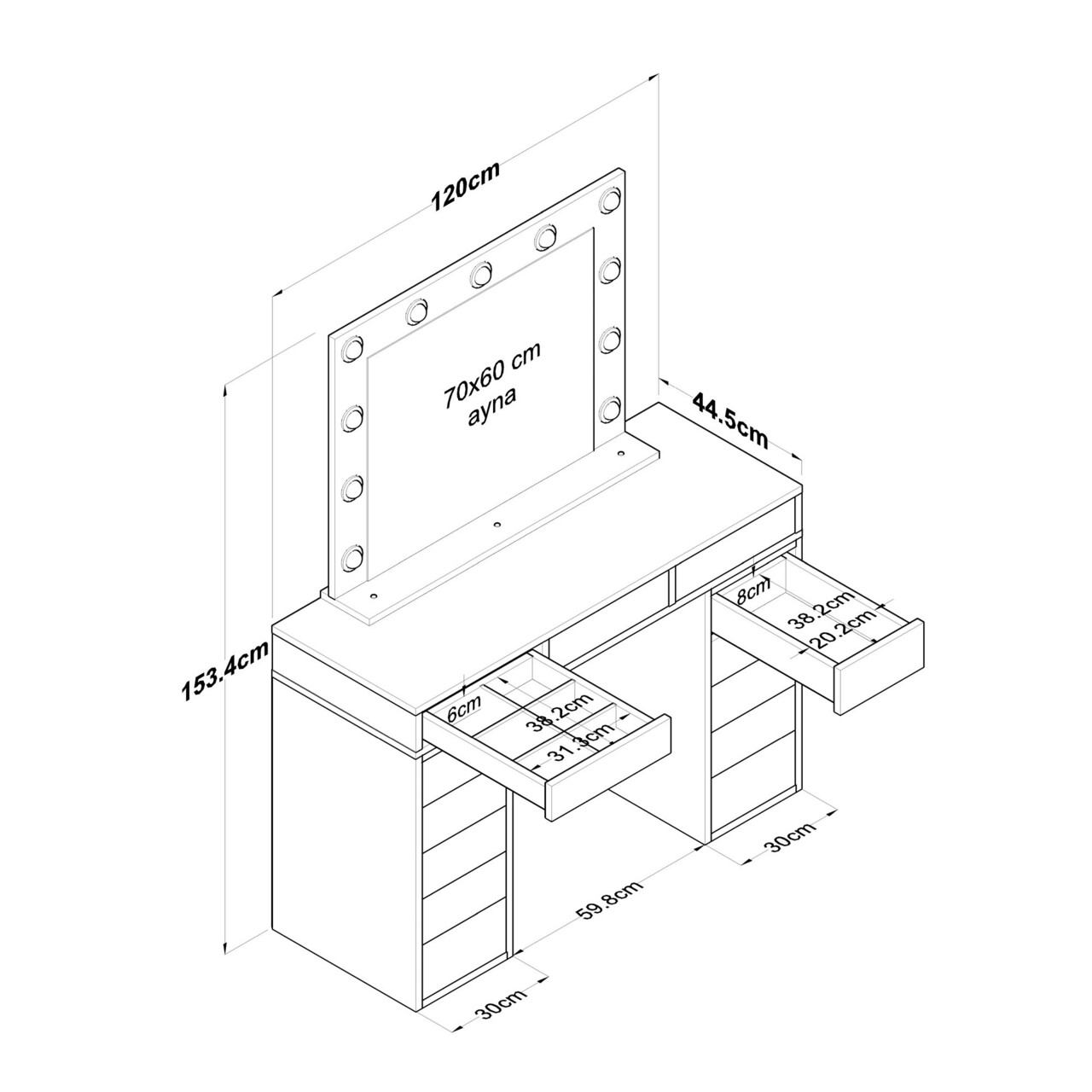 Masa de machiaj, Rani, BJ119, 120x81 cm, PAL, Alb