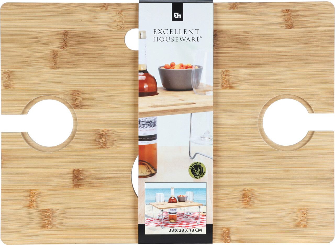 Masa de picnic pentru vin si pahare cu picior Bamboo, pliabila, 38x28x18 cm, bambus/fier