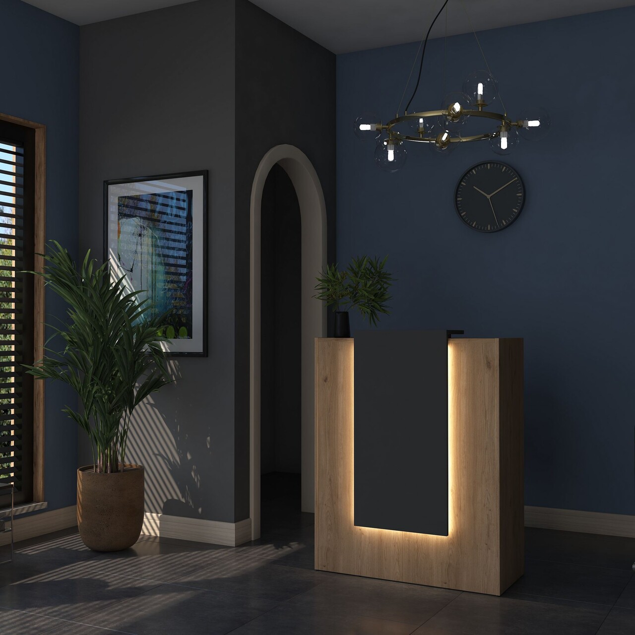 Masa de receptie, Rani, MA101, 90x110x40 cm, PAL, Nuc / Antracit