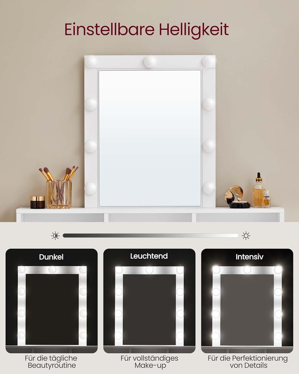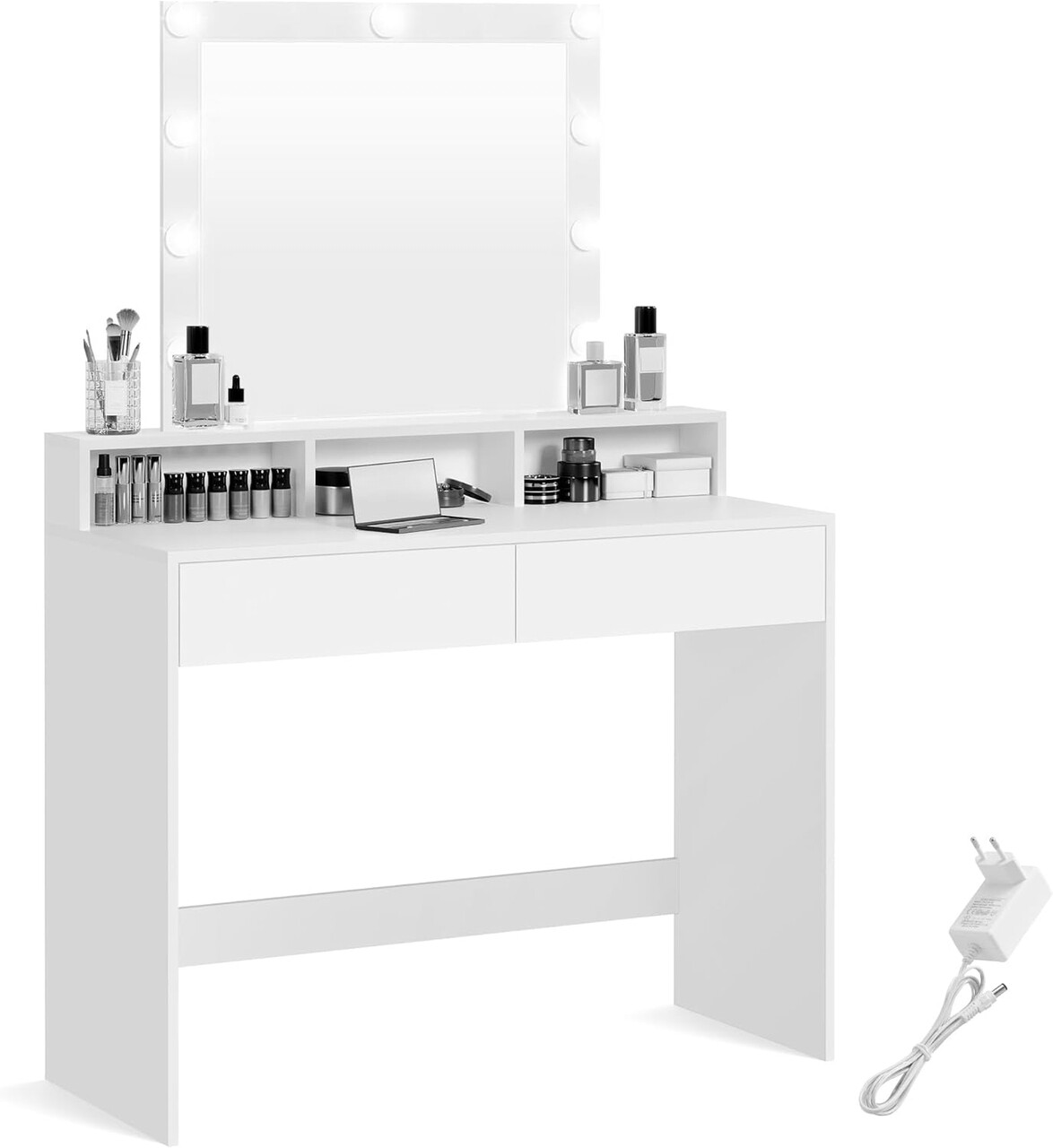 Masa de toaleta cu oglinda cu LED-uri ajustabile / masuta dressing, Vasagle, 100x40x145 cm, PAL, alb