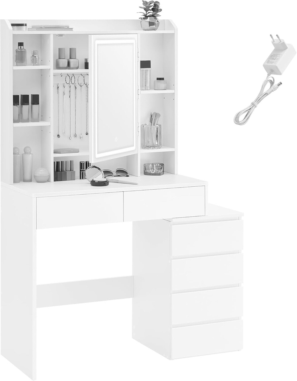 Masa de toaleta cu oglinda cu LED-uri / masuta dressing, Vasagle, 97.5x40x145 cm, PAL, alb
