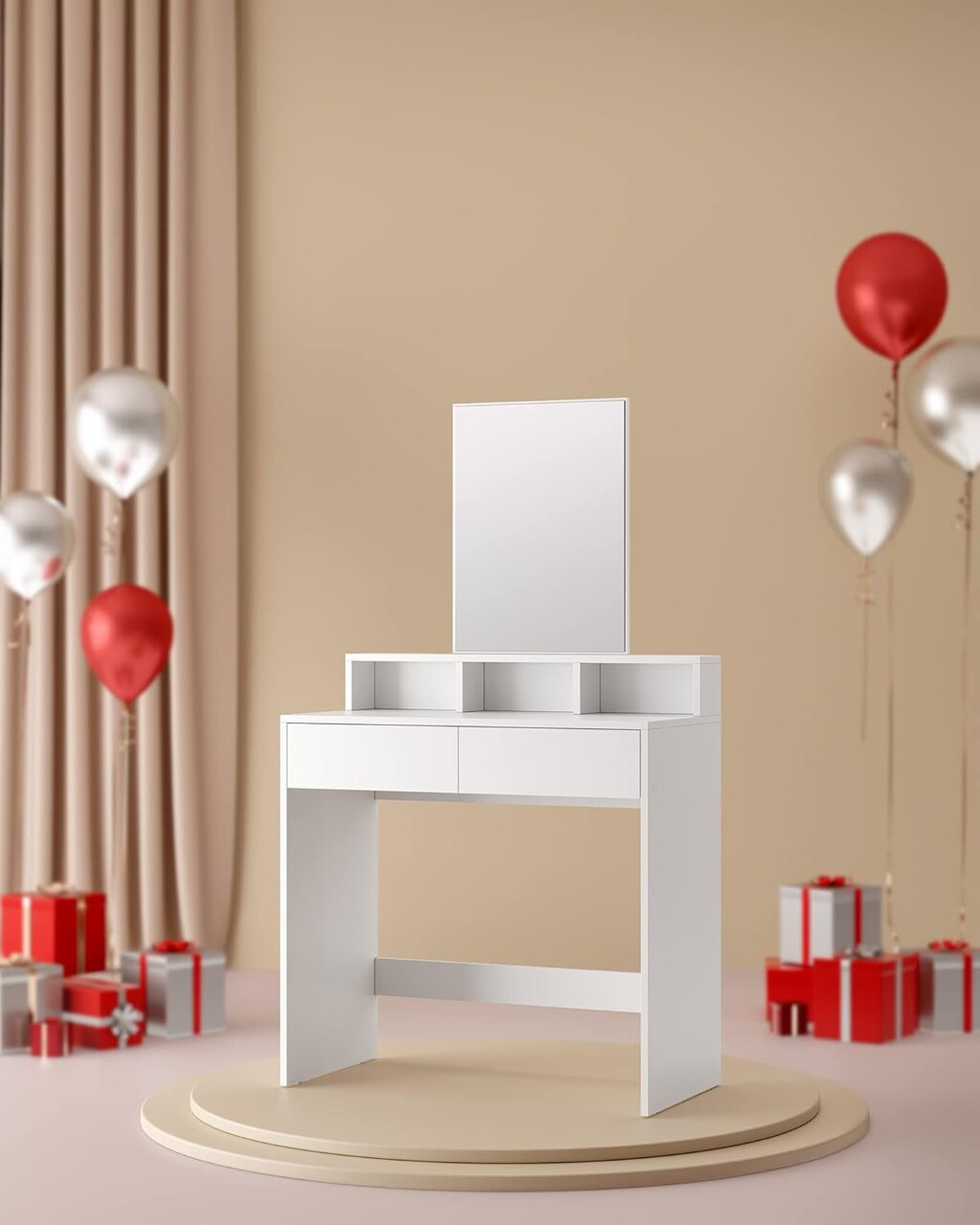 Masa de toaleta cu oglinda / masuta dressing, Vasagle, 80x40x140 cm, PAL, alb