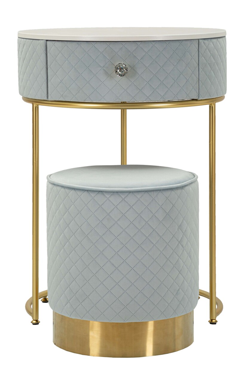 Masuta de toaleta/noptiera cu design rafinat - catifea bleu si insertii aurii