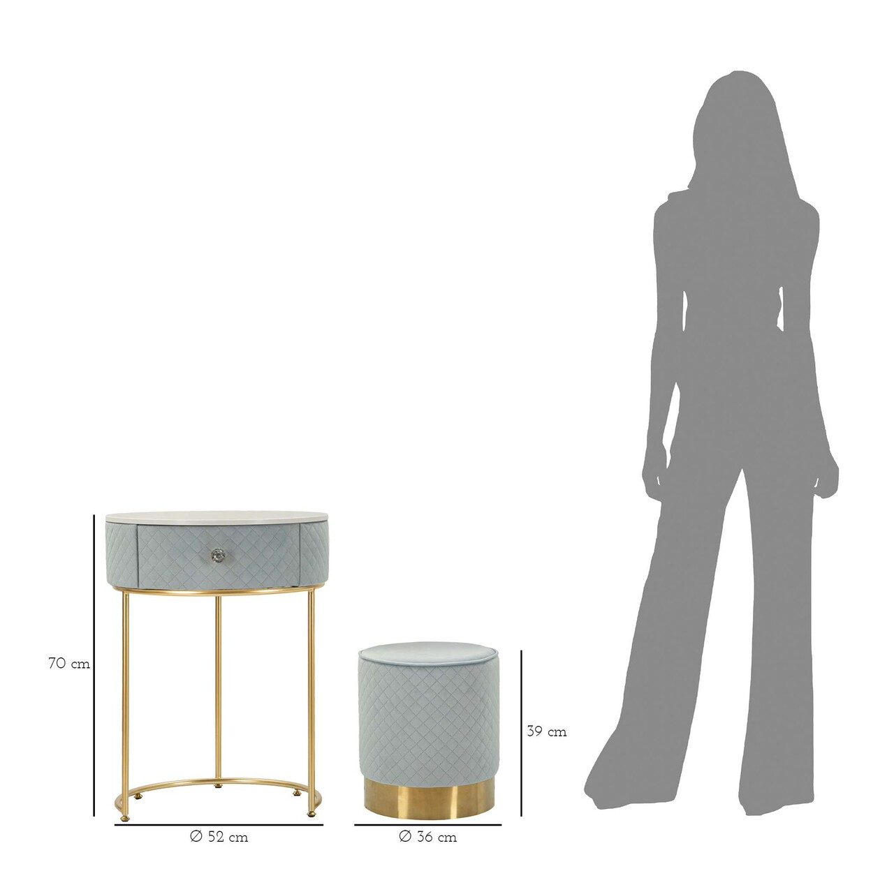 Masa de toaleta cu taburet / masuta dressing Vellit, Mauro Ferretti, 52x70 cm, lemn de pin/MDF/metal, albastru deschis