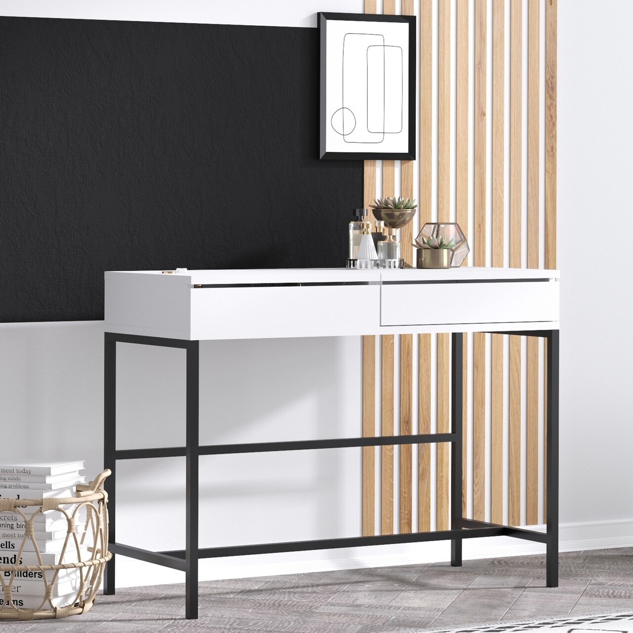 Masa de toaleta / machiaj cu oglinda si sertare, Emerald, Amour, 100 x 74 x 50 cm, pal melaminat, alb/negru