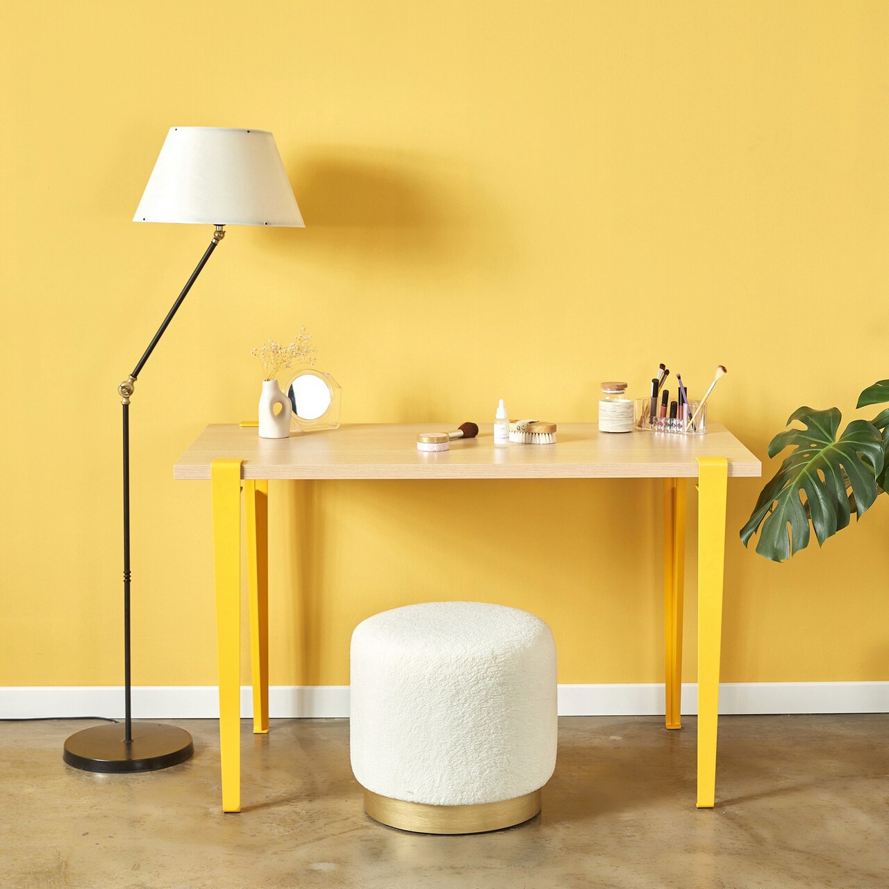 Masa de toaleta / machiaj, Logg, Elaea, 90x75x45 cm, Lemn / Galben
