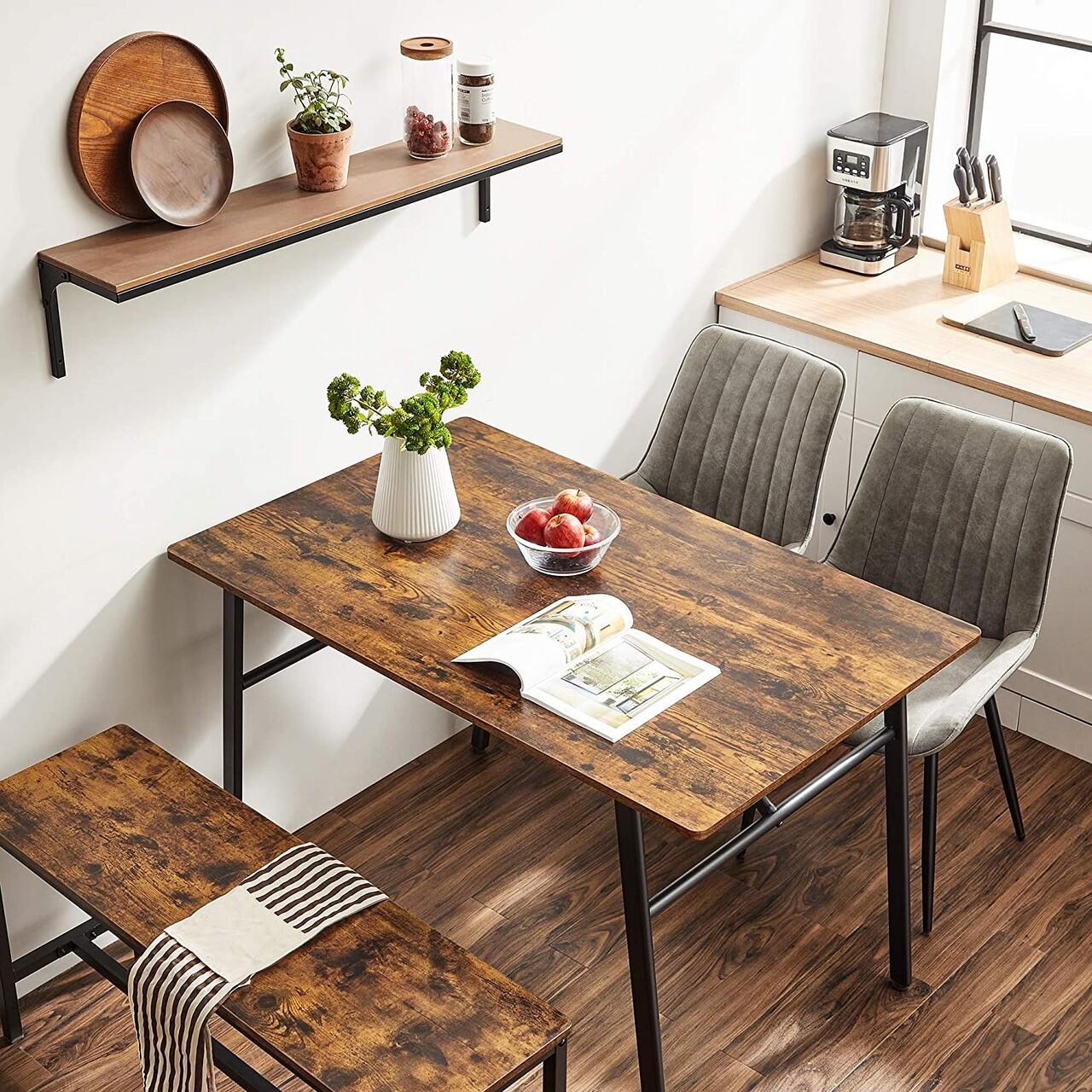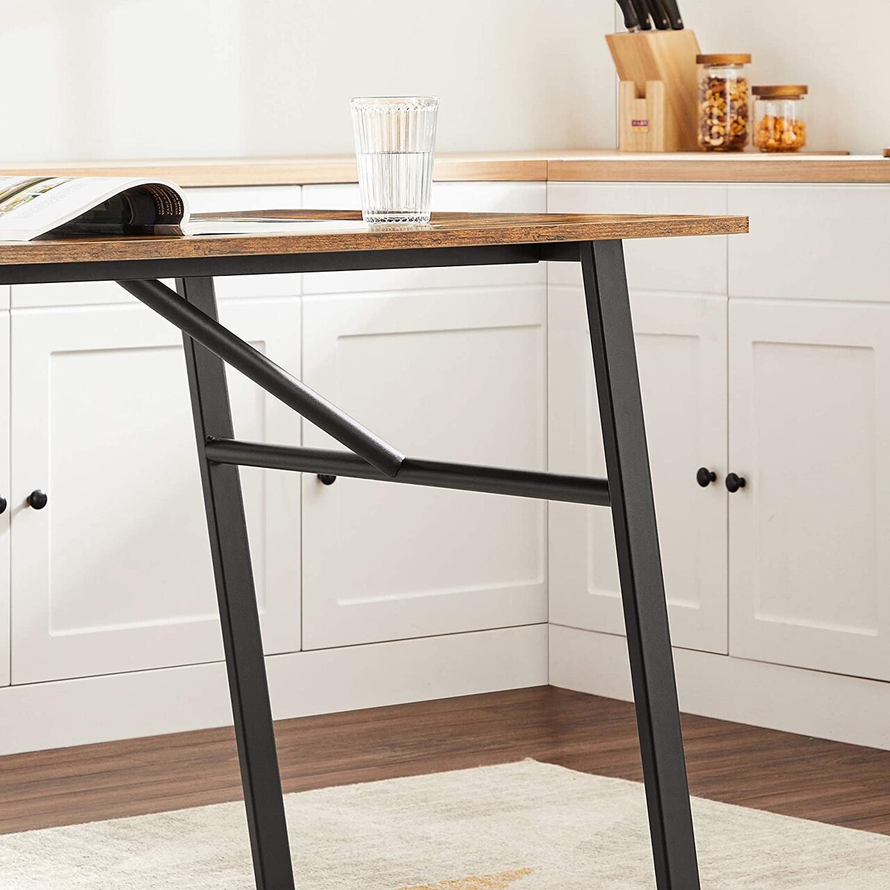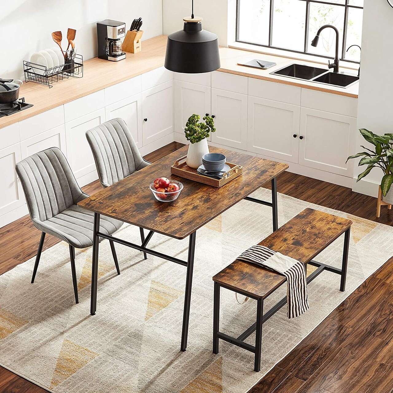 Masa dining 4 persoane Industrial Style, Vasagle, 120 x 75 x 75 cm, otel/PAL, maro