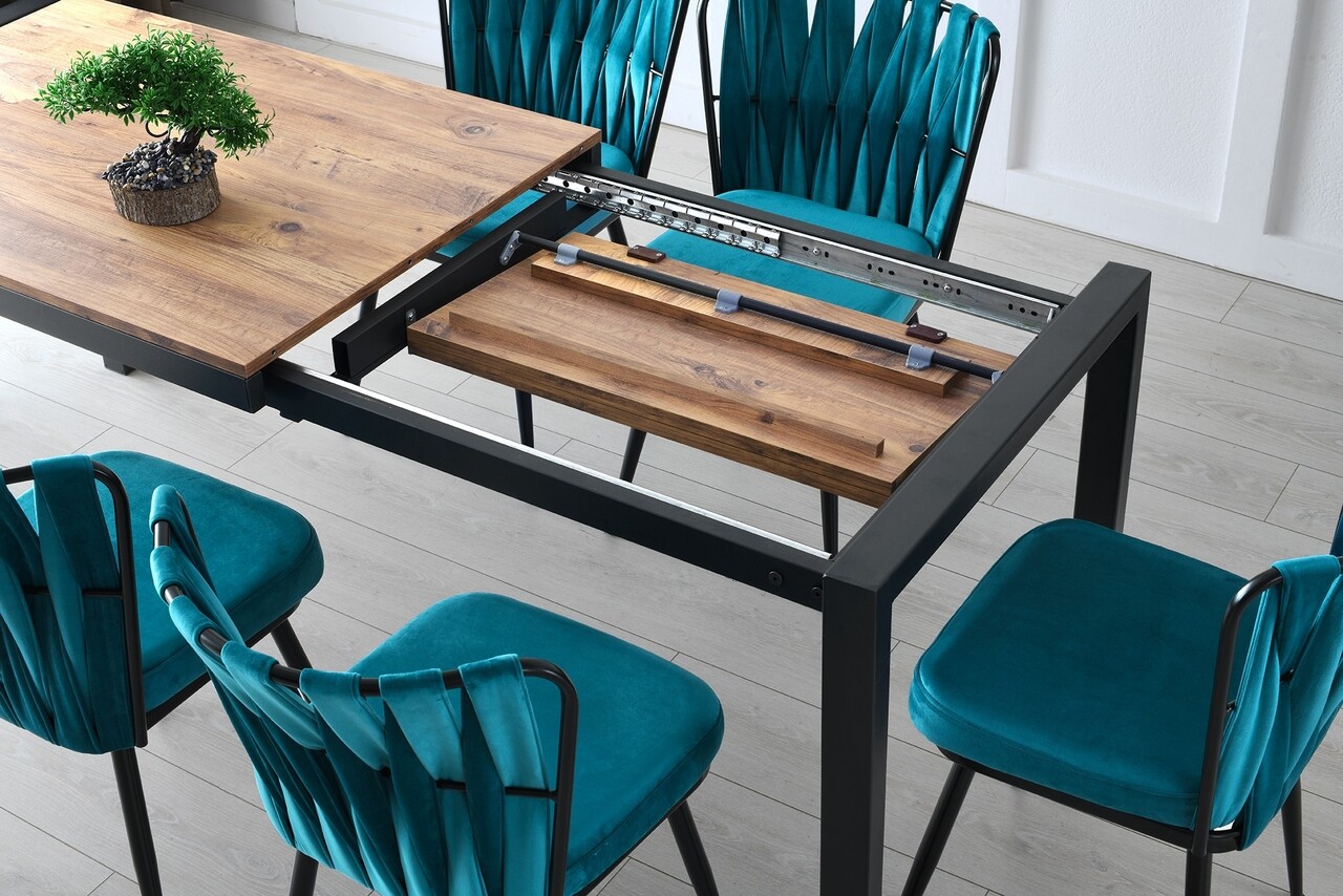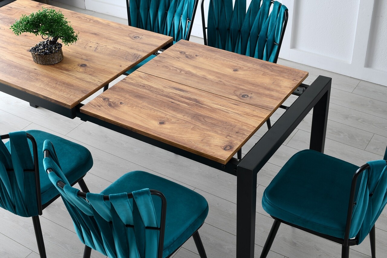 Masa dining extensibila, Nmobb, Silva Atlantic, 120/187 x 75 x 74 cm, pal melaminat, maro/negru