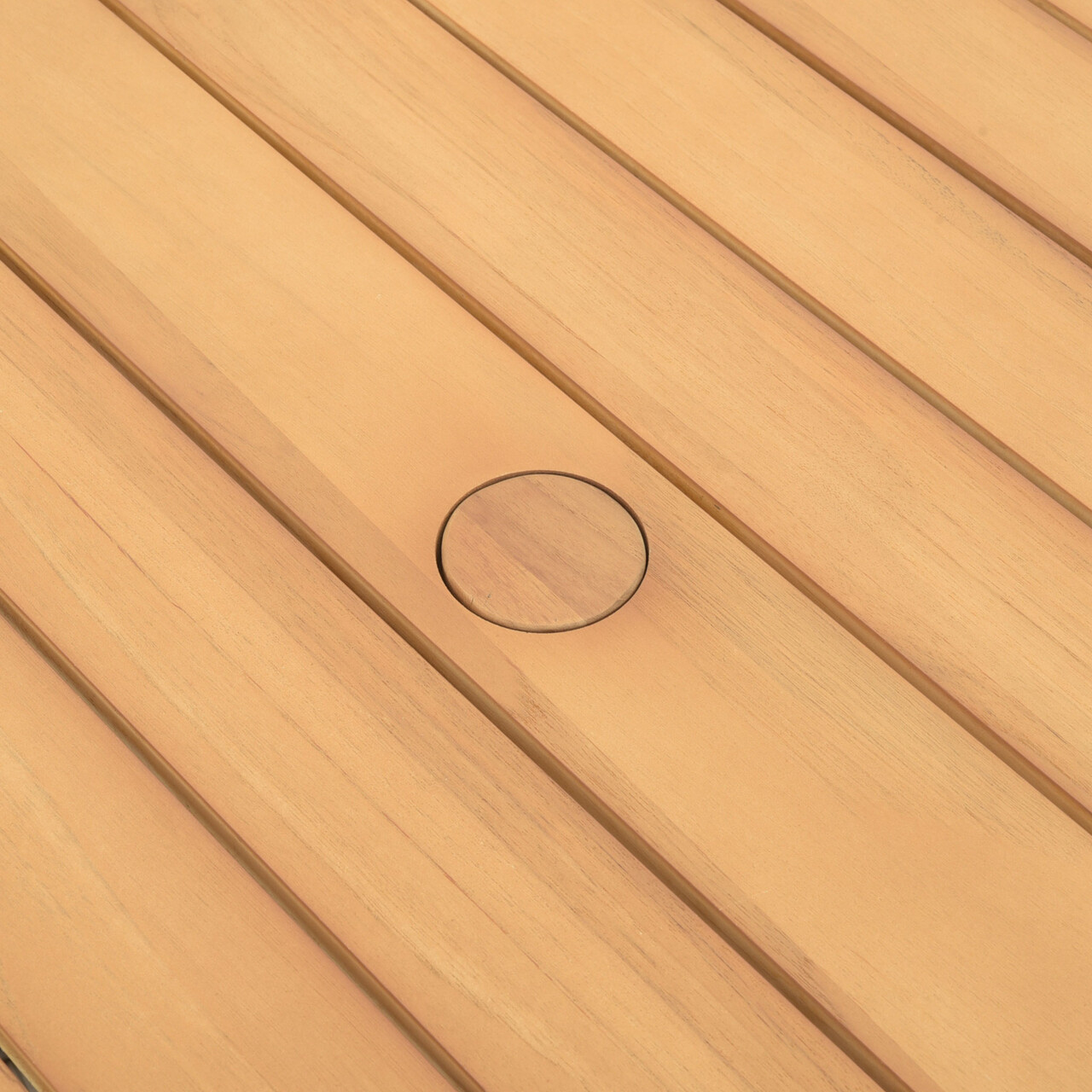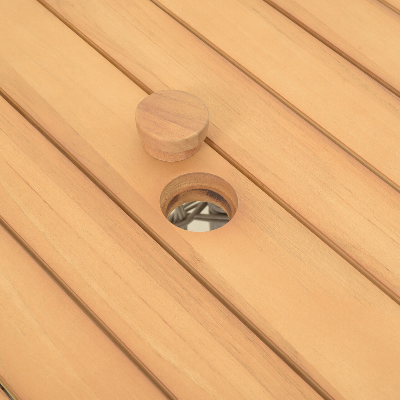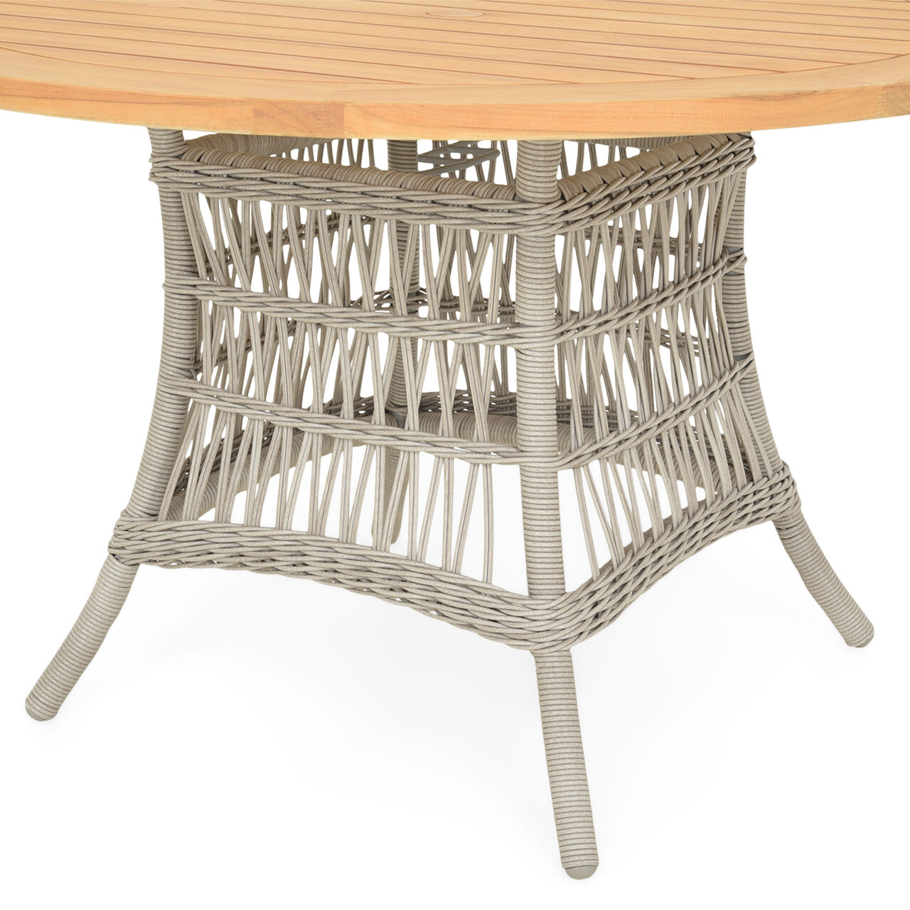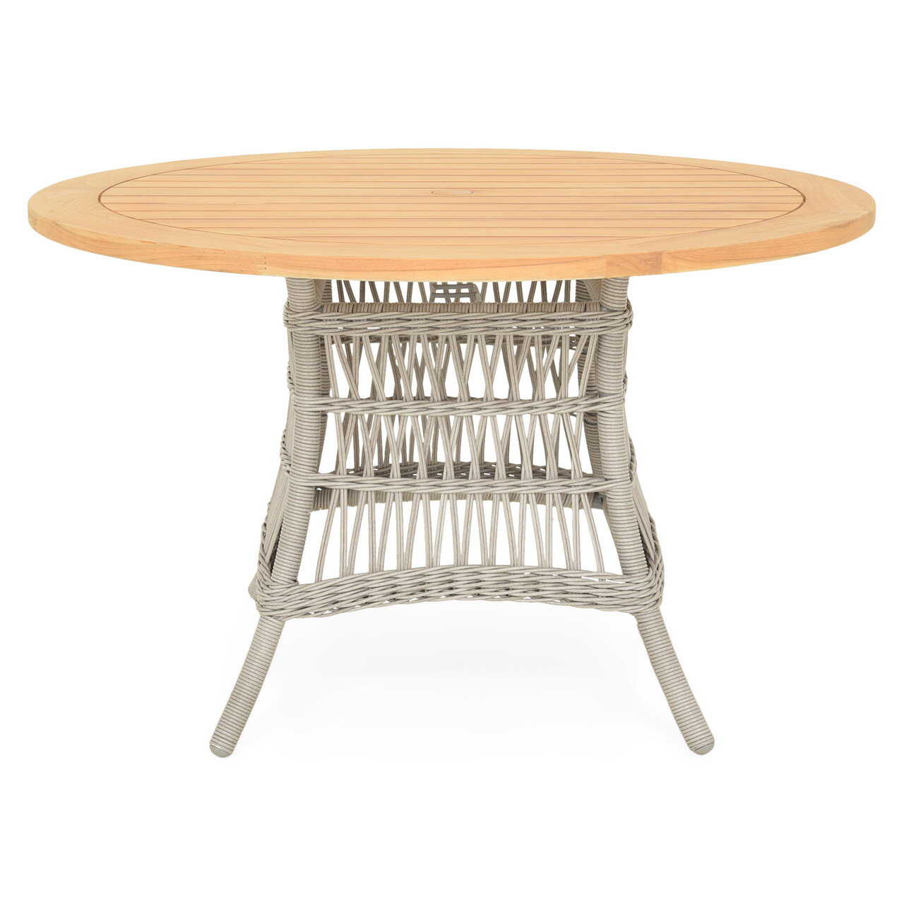 Masa dining rotunda pentru gradina/terasa Mackinac, 122x75 cm, aluminiu/lemn de teak, gri/natur