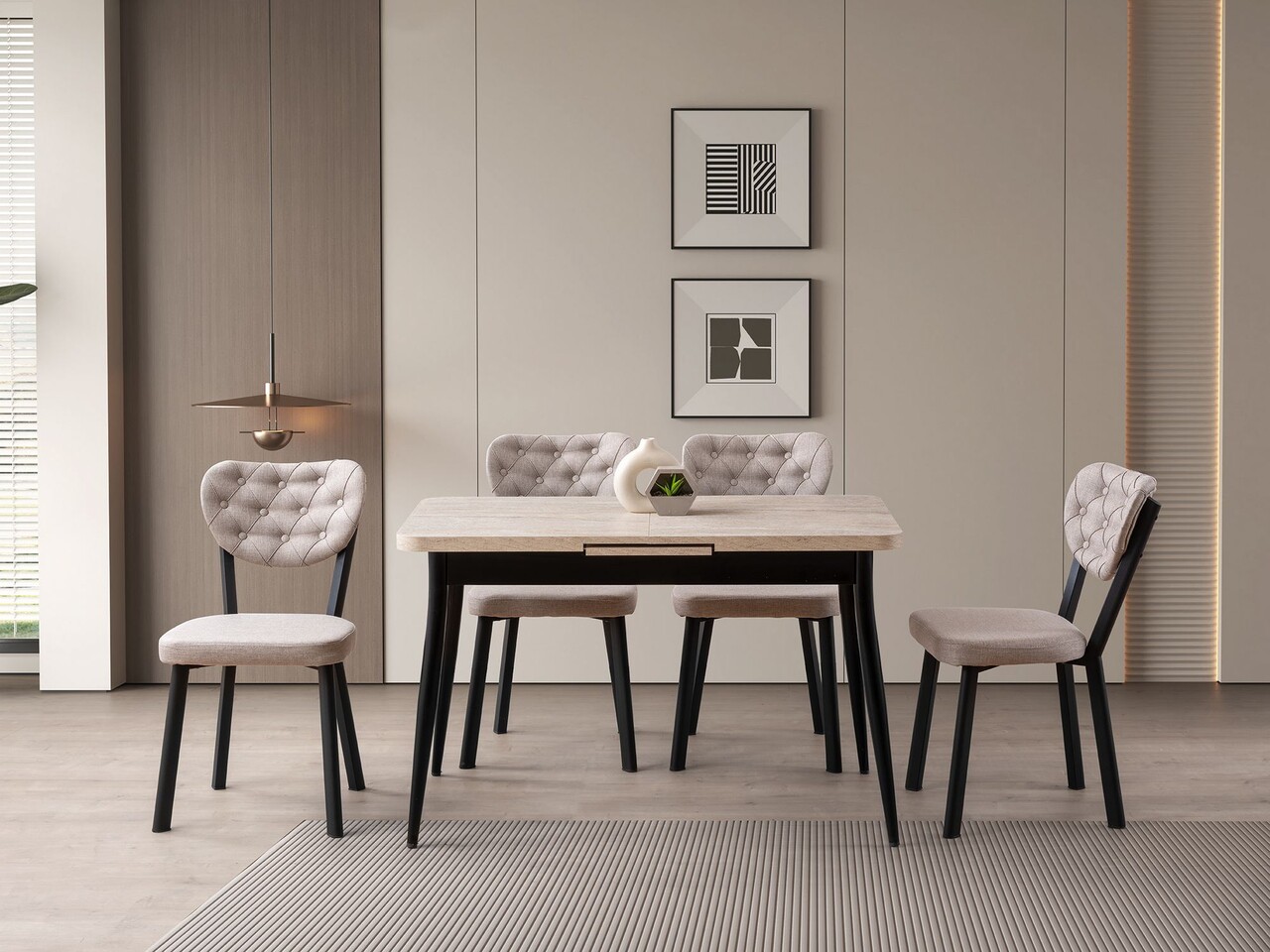 Masa extensibila, Hanah Home, Ay, PAL, Travertin / Negru