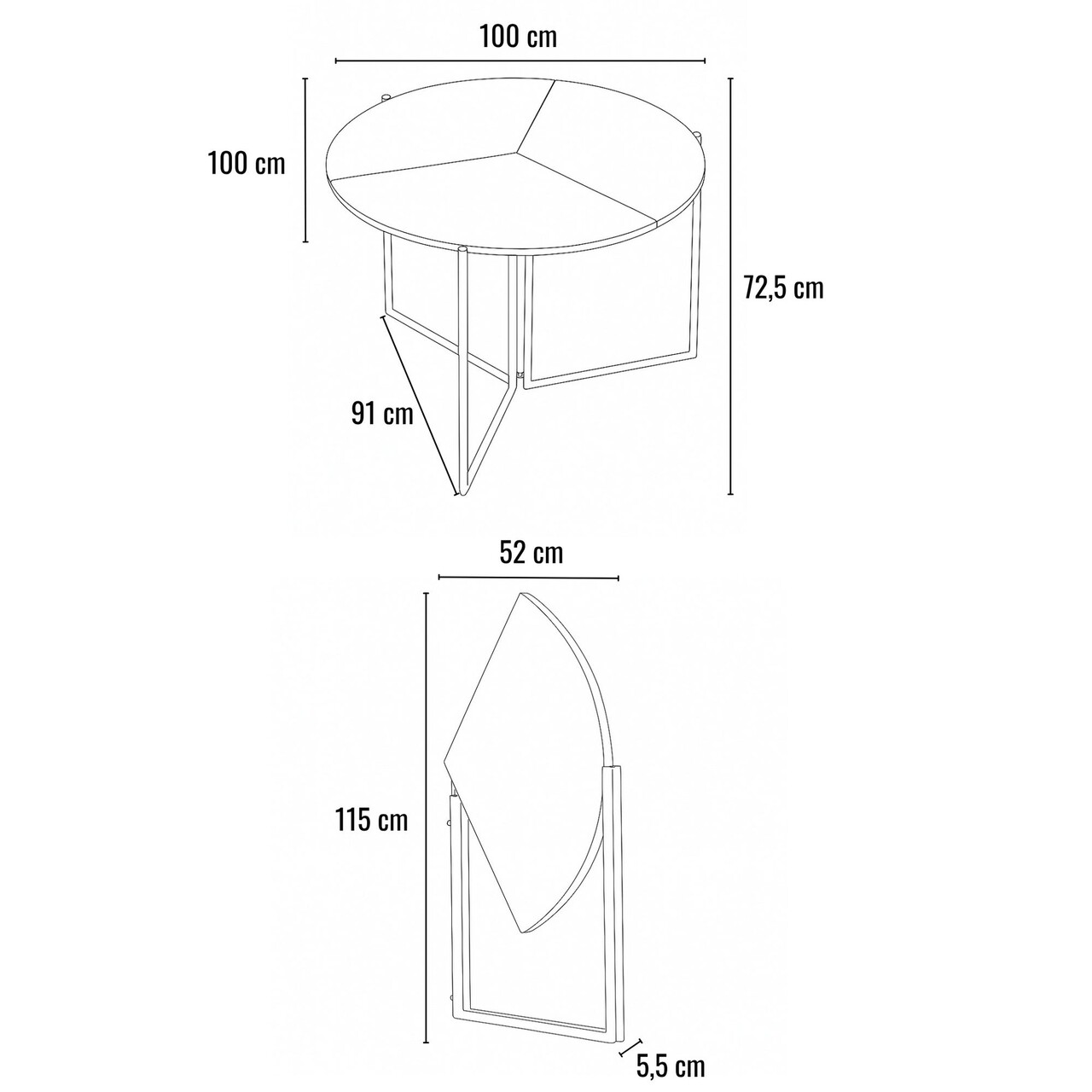 Latime: 100 cm Inaltime: 72 cm Adancime: 100 cm