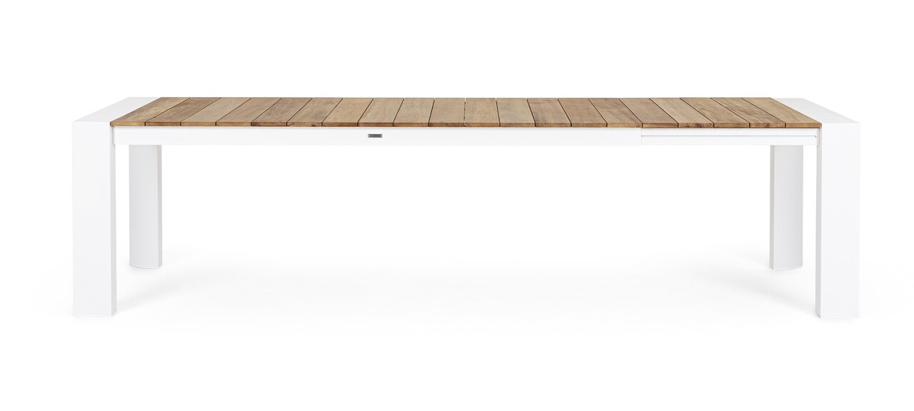Masa extensibila pentru gradina/terasa Cameron, Bizzotto, 228-294 x 100 x 75 cm, aluminiu/lemn de tec, alb