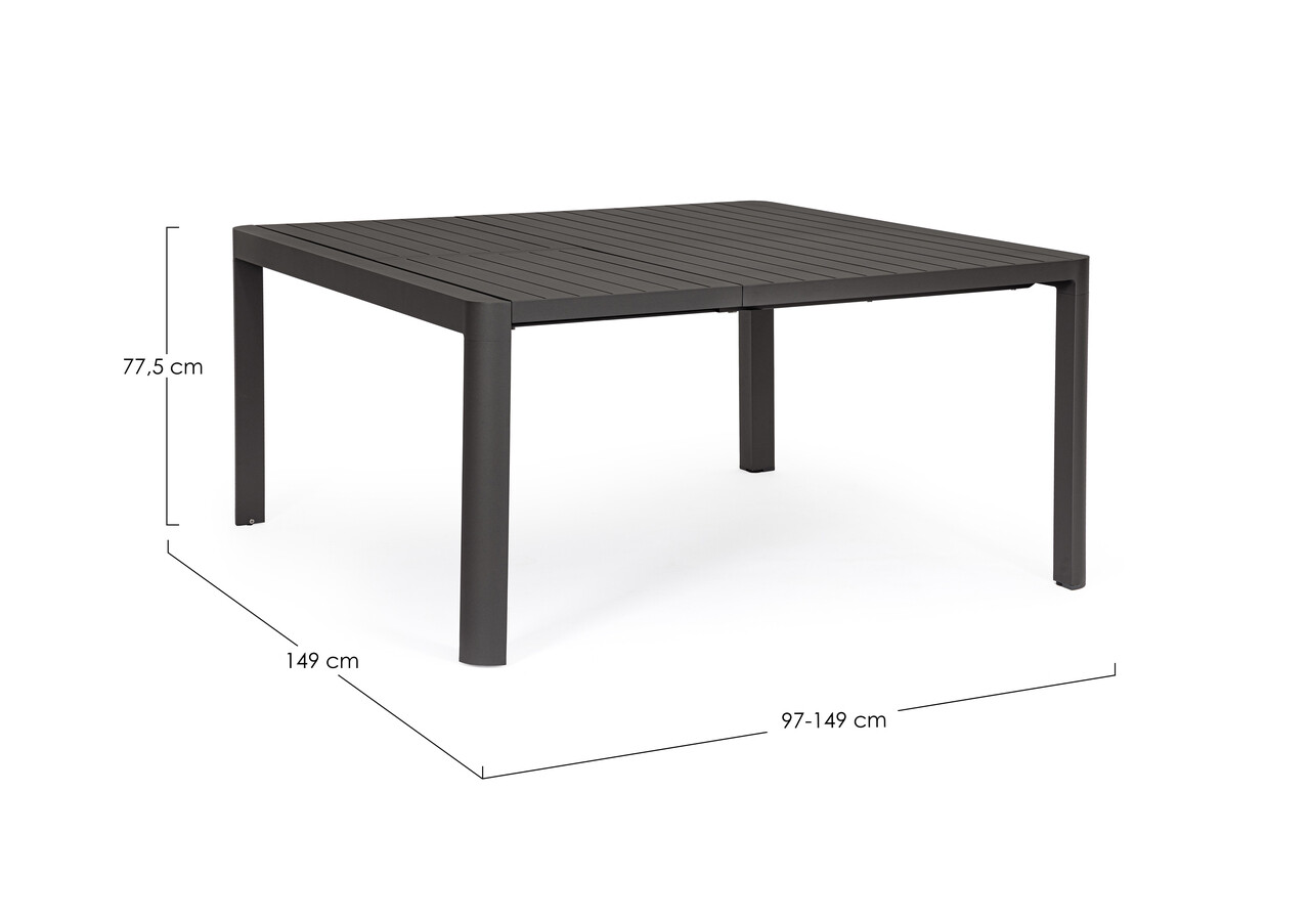 Masa extensibila pentru gradina/terasa Kiplin, Bizzotto, 149 x 97/149 x 77.5 cm, aluminiu, gri carbune