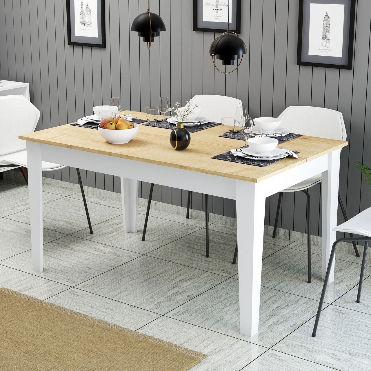 Masa, Hanah Home, Milan 896, PAL, Alb / Stejar