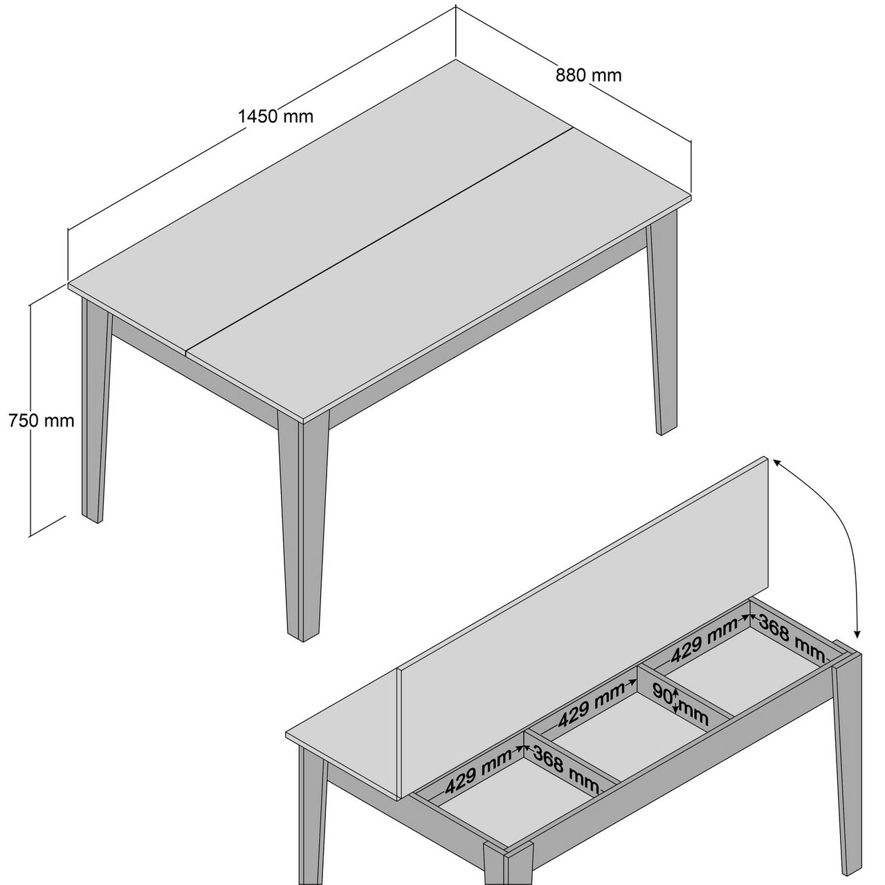 Dimensiunea mesei: Latime: 145 cm Inaltime: 75 cm Adancime: 88 cm