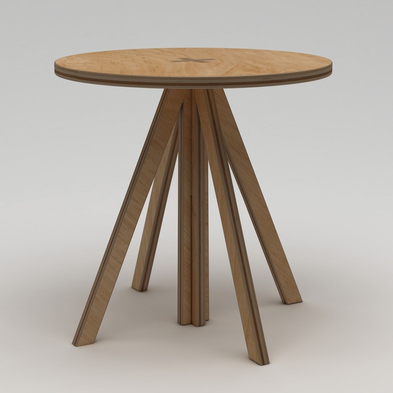 Masa, Hanah Home, Tripus, 75x75x75 cm, 100% BIRCH PLYWOOD, Lemn natural