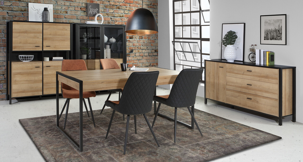 Masa Heusden, Bedora, 166x90.2x76.9 cm, PAL, stejar/negru