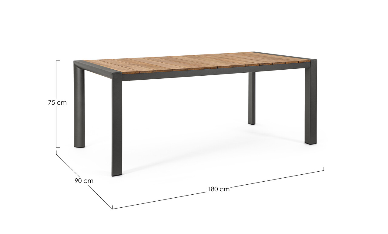 Masa pentru gradina Cameron, Bizzotto, 180x90x75 cm, aluminiu/lemn de tec, gri carbune